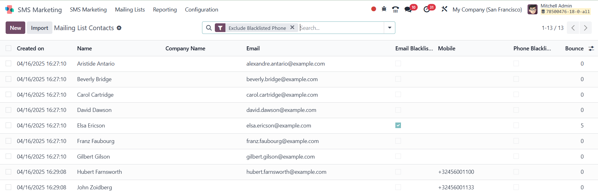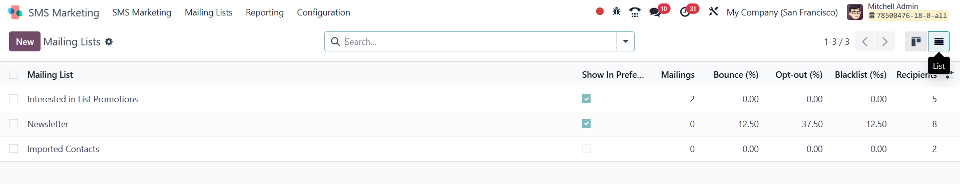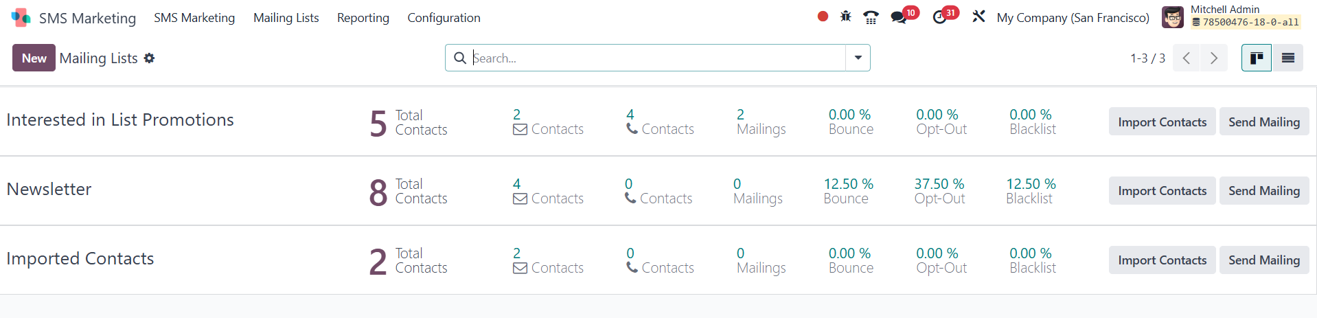 Mailing Lists is a crucial feature within the SMS Marketing module,