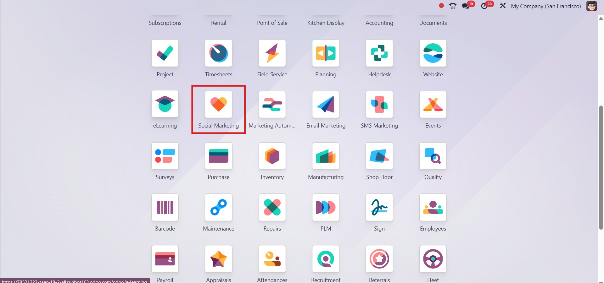 The Social Marketing in Odoo 18 can be easily installed from the