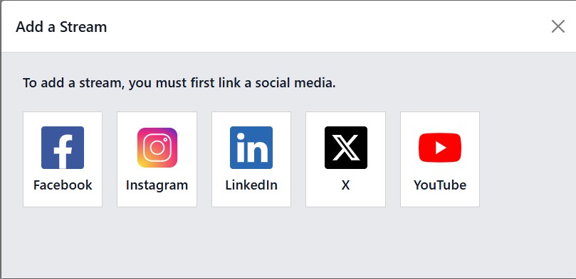 Adding additional streams is straightforward. To include a new social