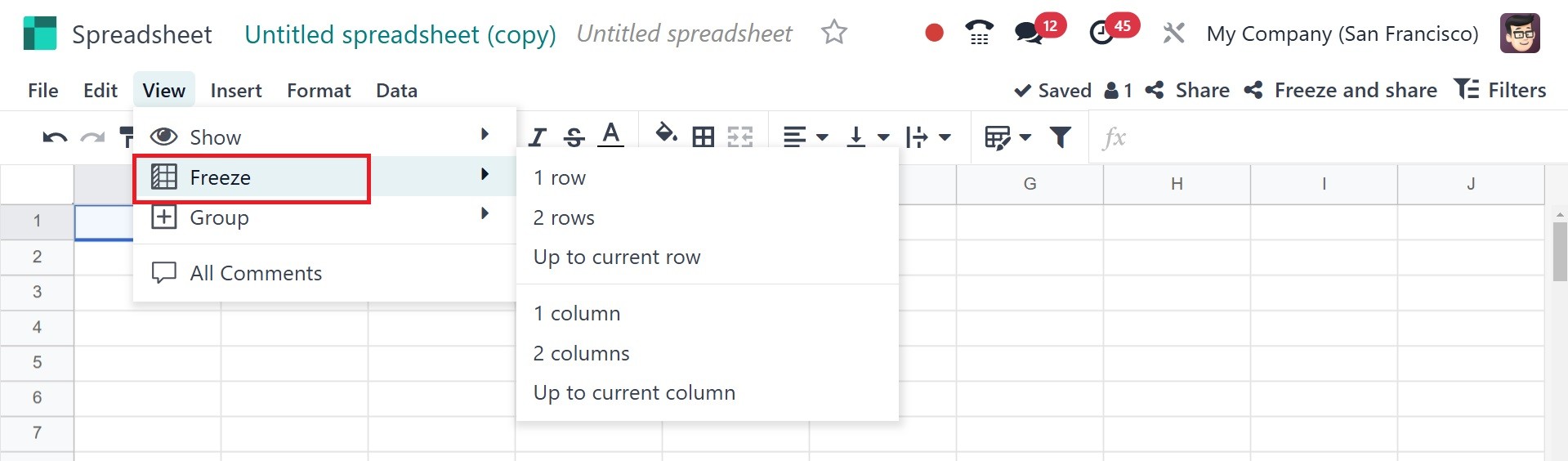 Freeze: Locks specific rows or columns for easier scrolling. It cna
