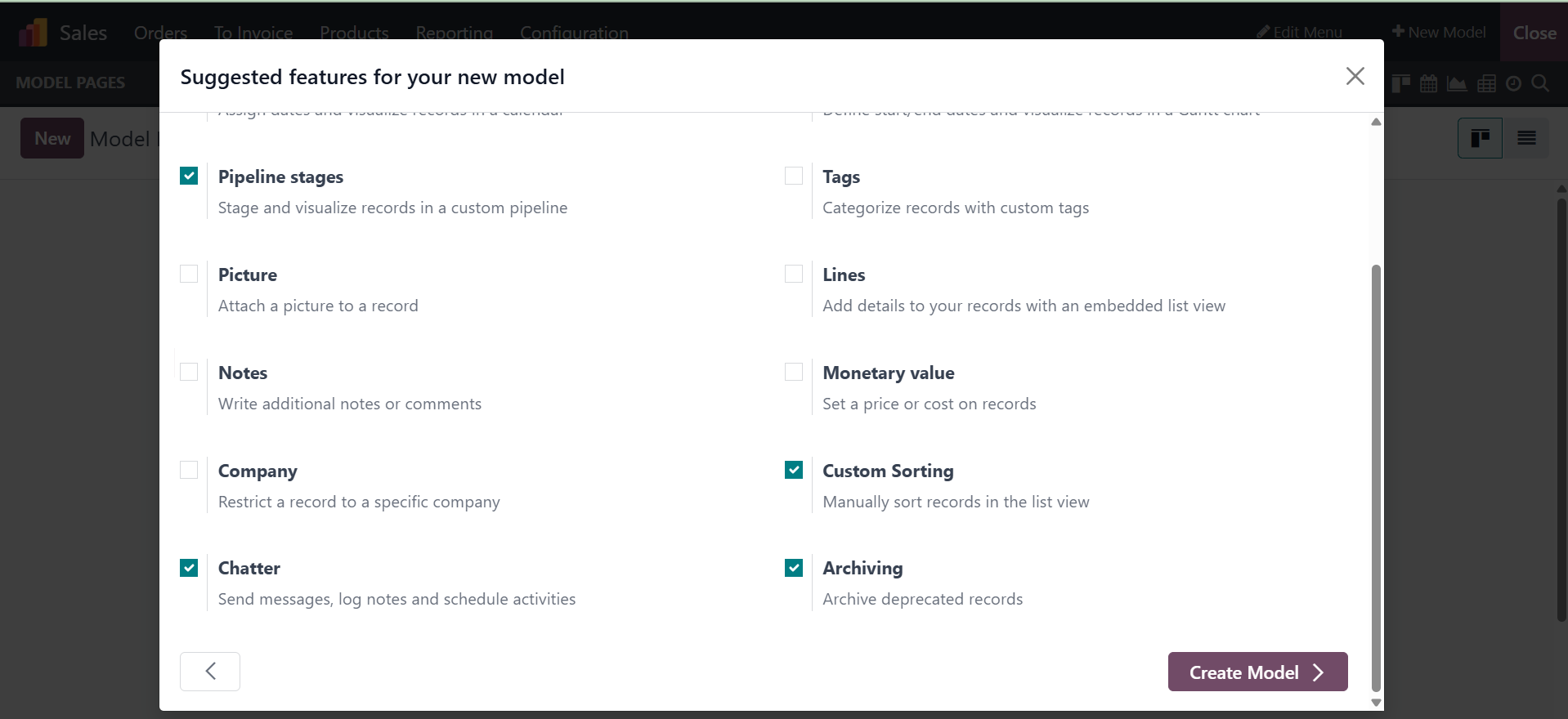 Pressing the "Create Model" button will enable the "Pipeline Stages"