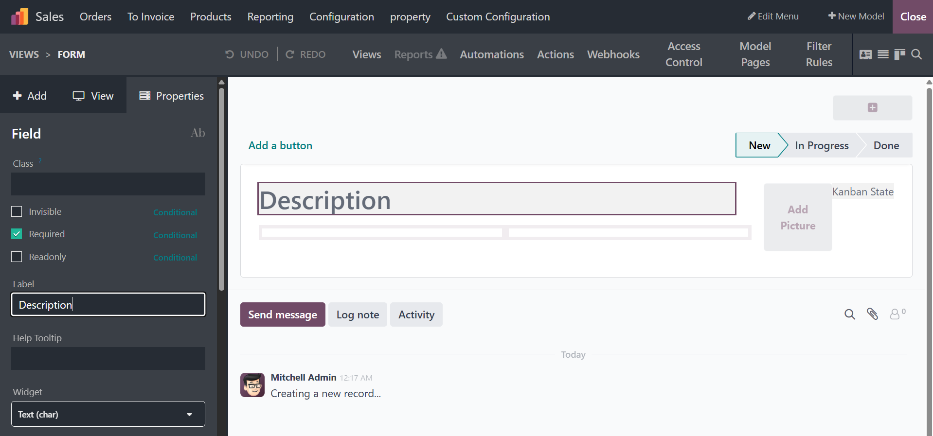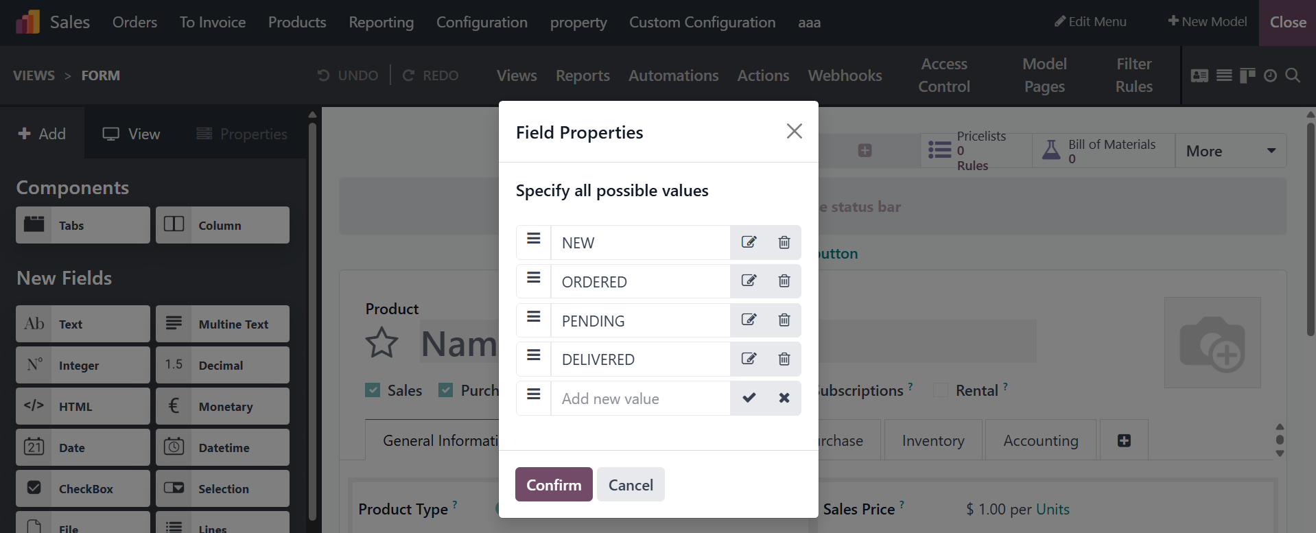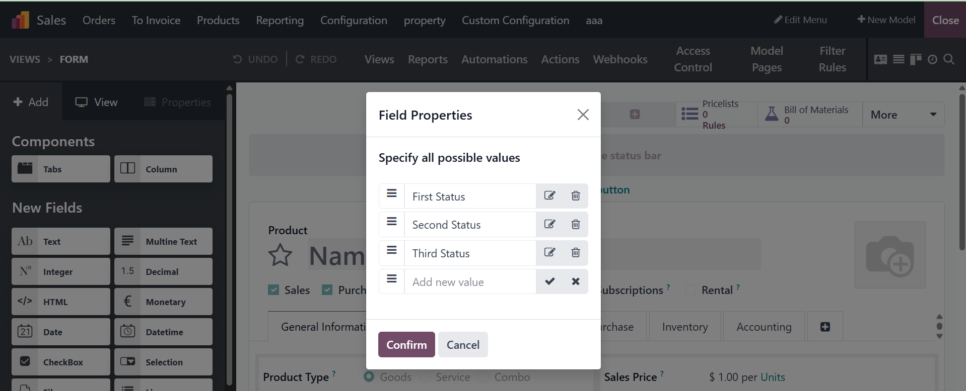 button. You can modify the Pipeline Stages in the "Field Properties"