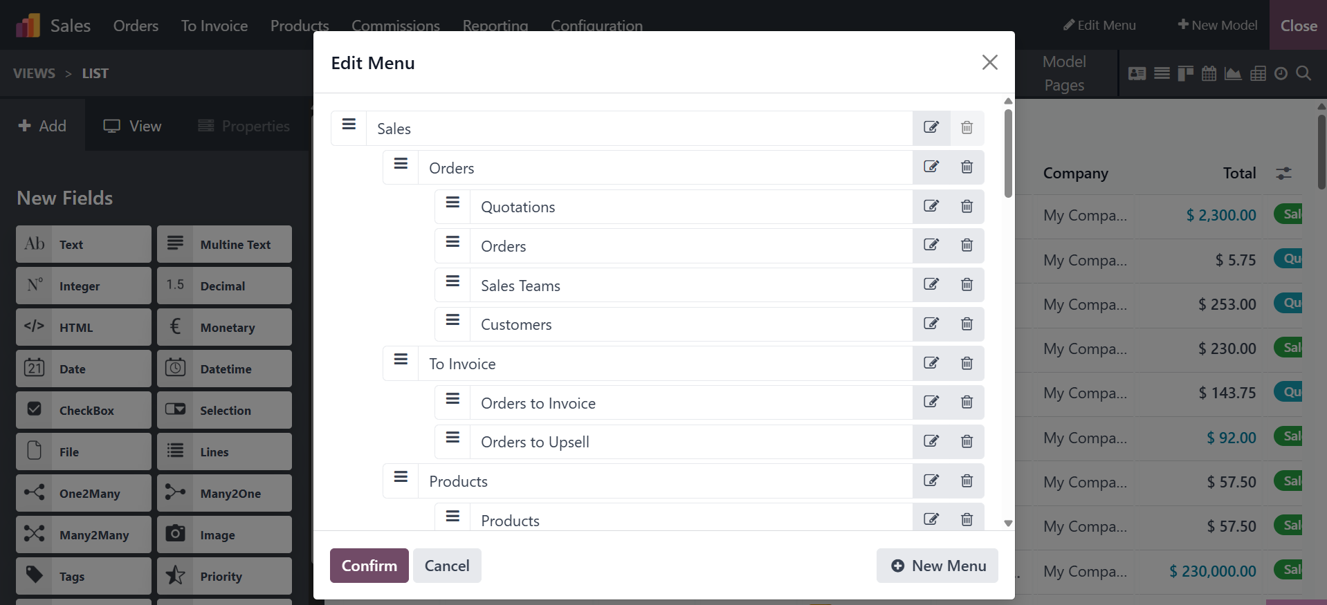 To add a new menu, just click the "New Menu" button in the lower
