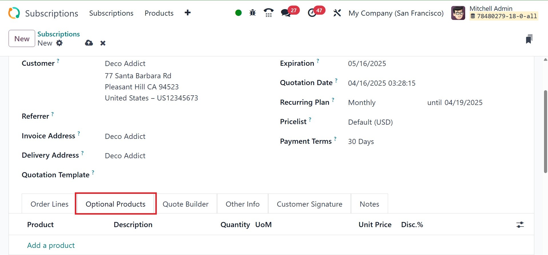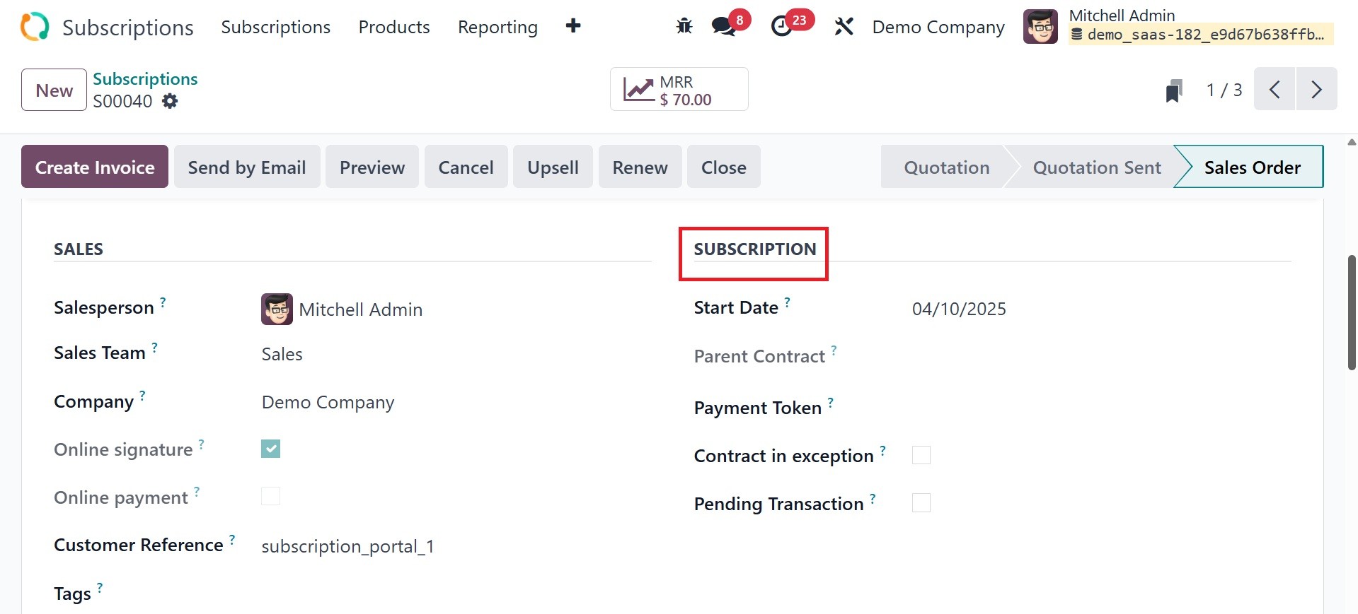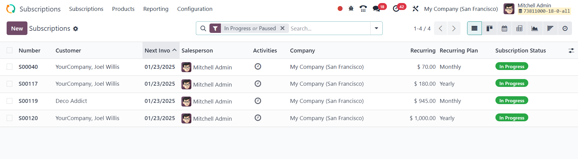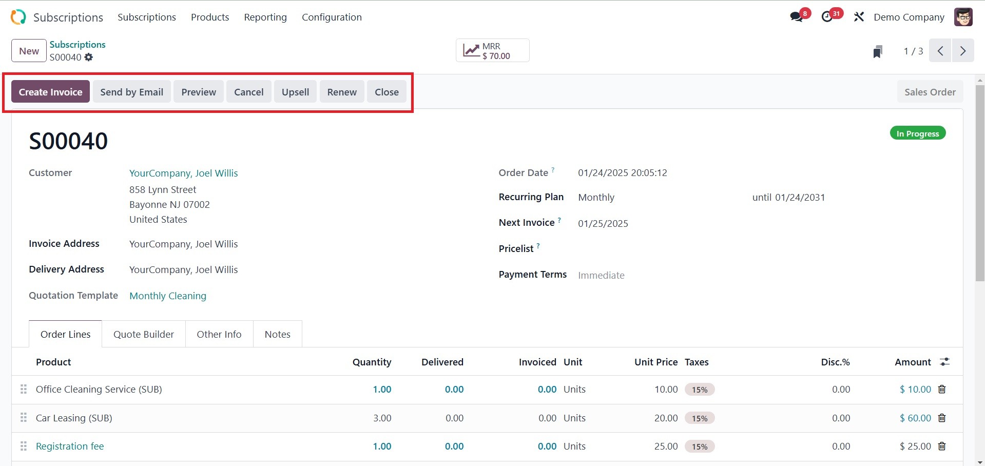 Odoo Subscription module is