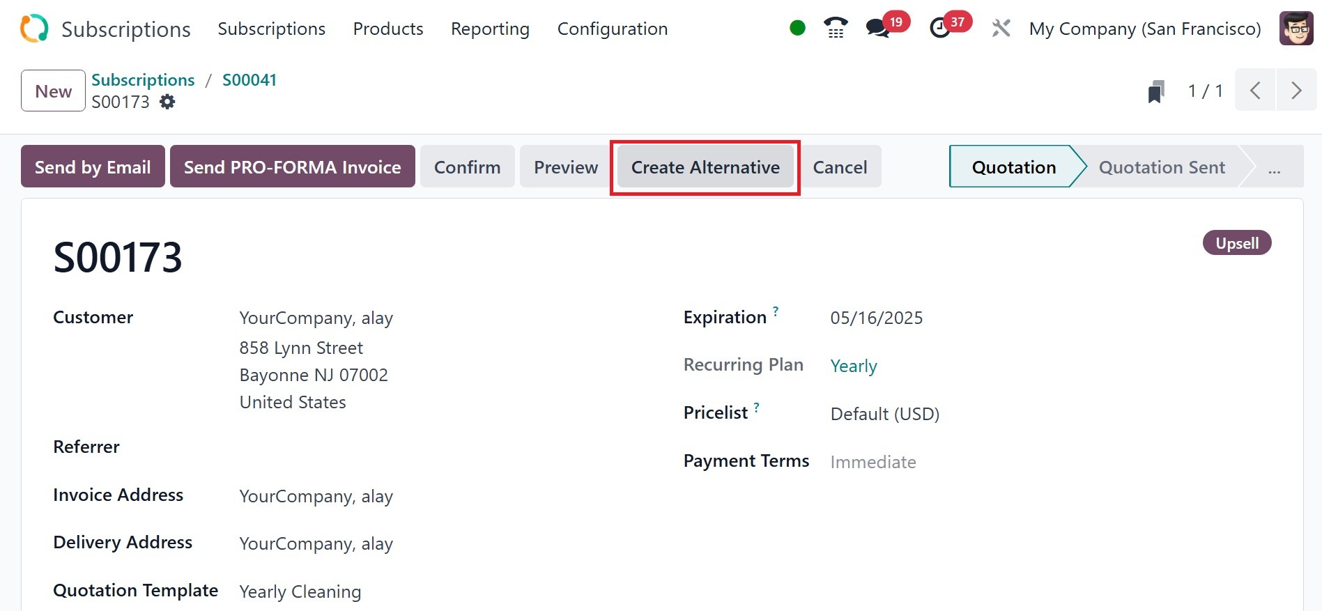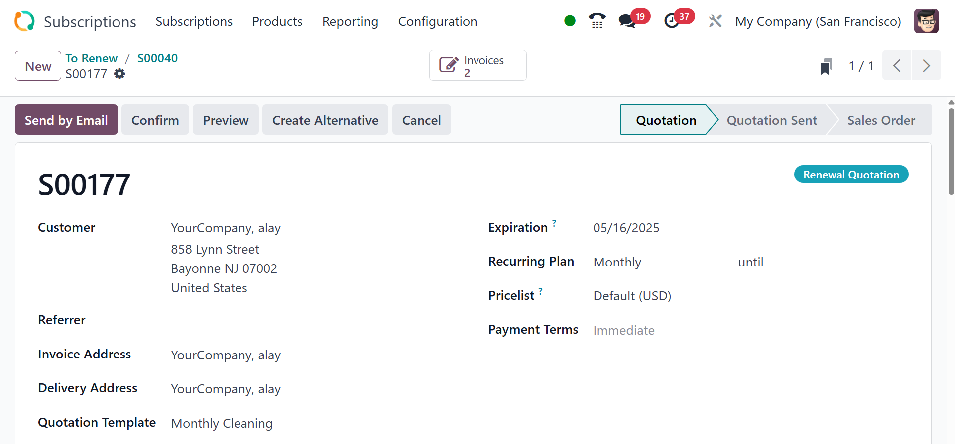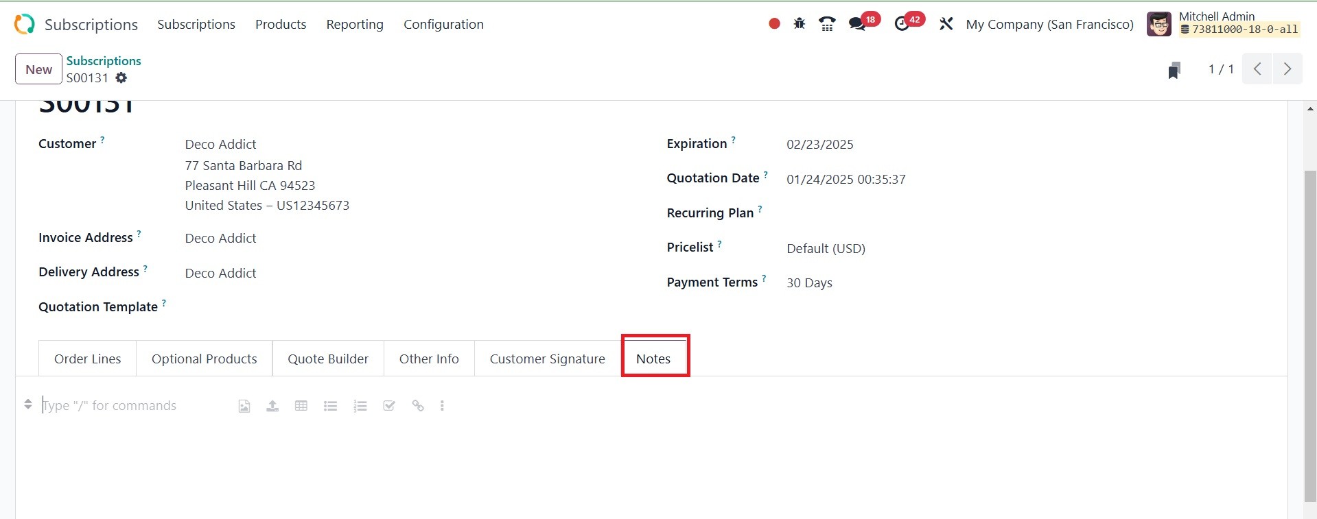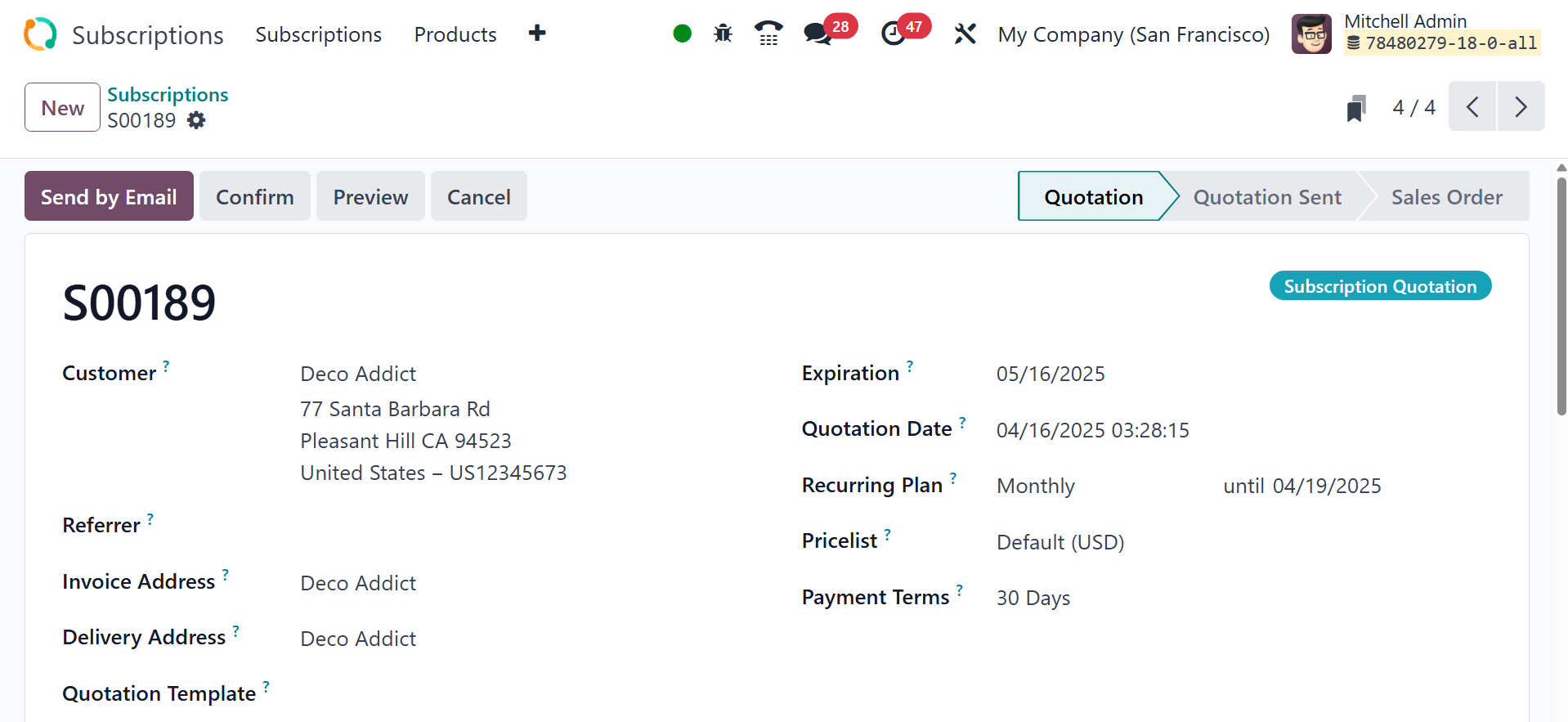 quotations. The Odoo