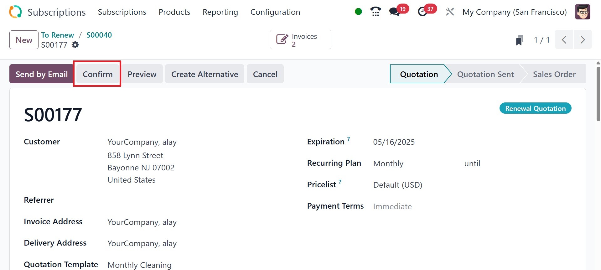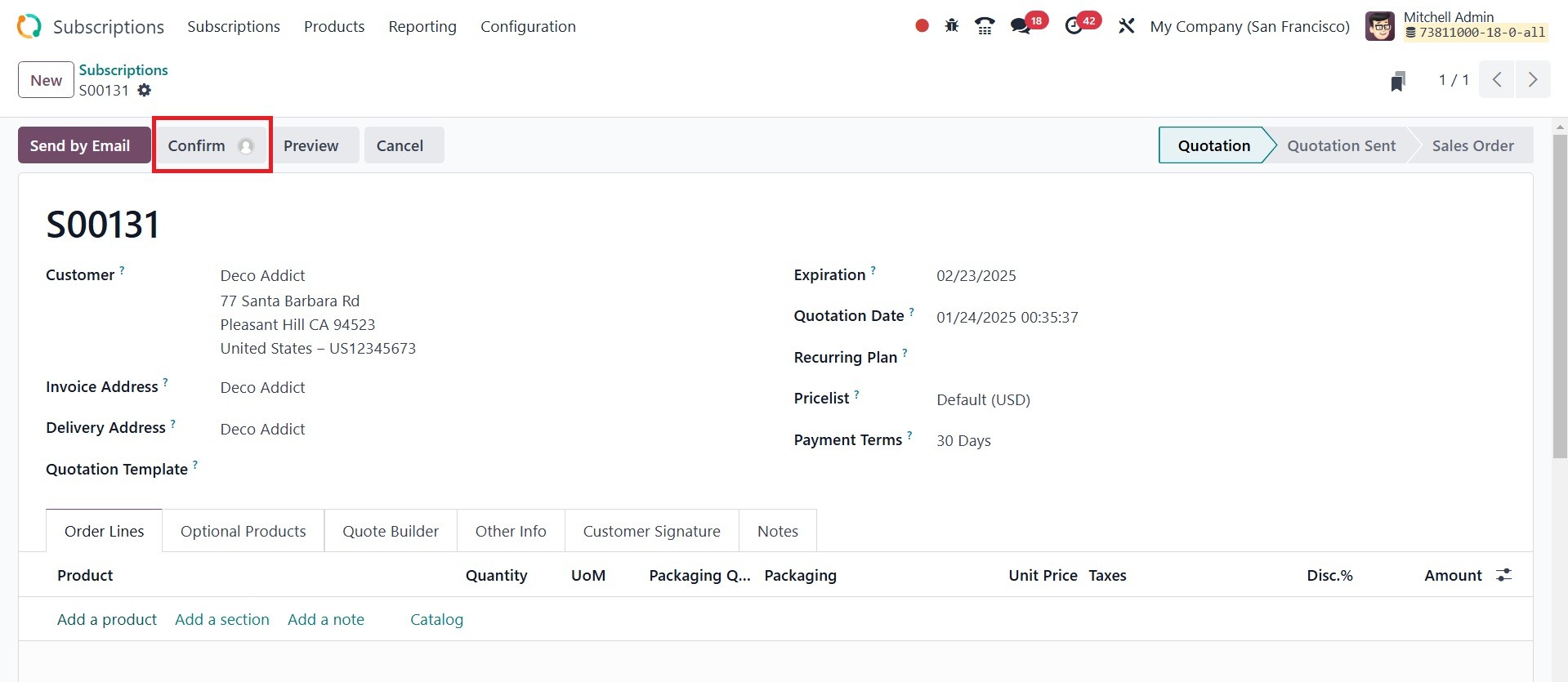 has been confirmed, Odoo18