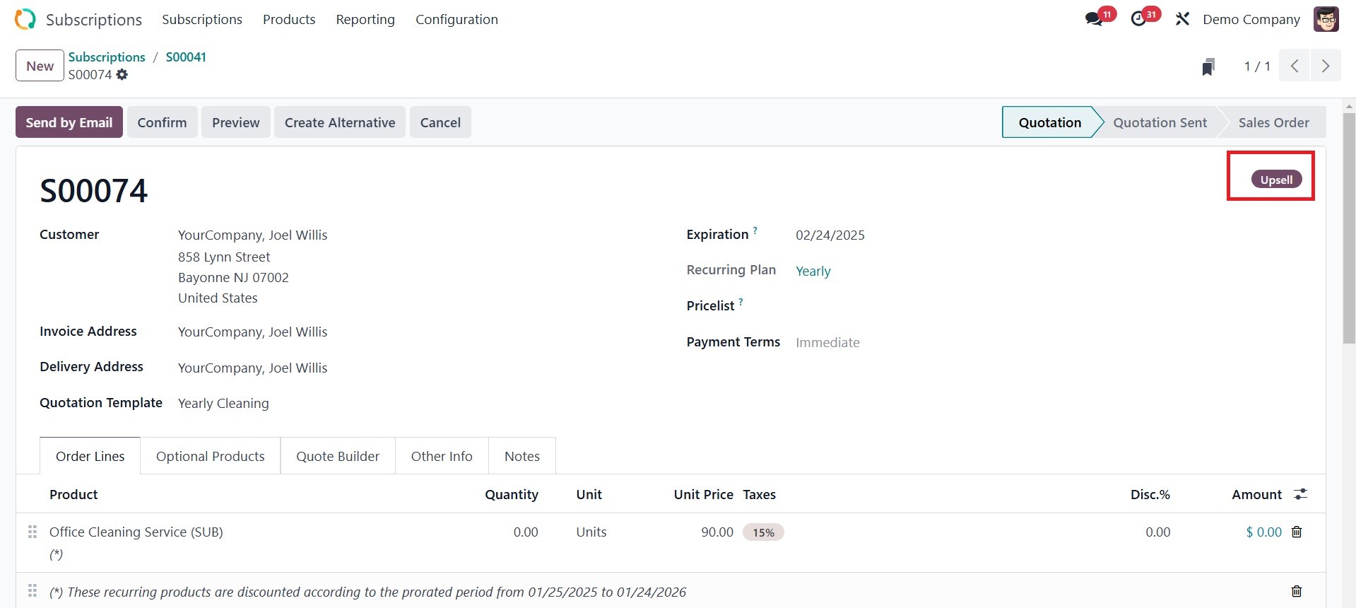 upsell product quotation will