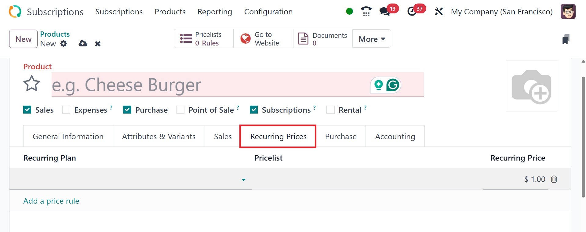 product under the "Recurring