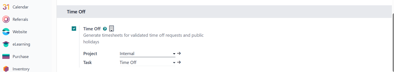 timesheets by mentioning the Project and Time Off options.