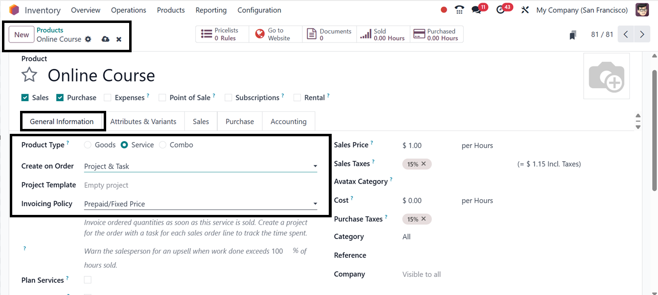 Enabling the correct invoicing policy and setting the ‘Create on Order’ option to