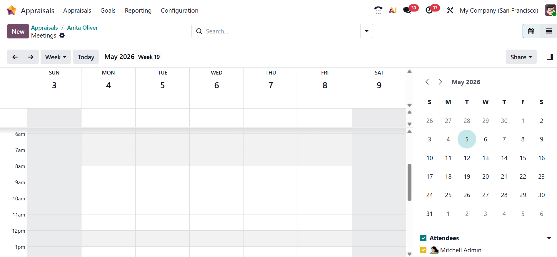 Clicking the Schedule Meeting button will open a new window, as shown below. Here, the manager can set up an appraisal discussion with the employee by choosing a date and time.
