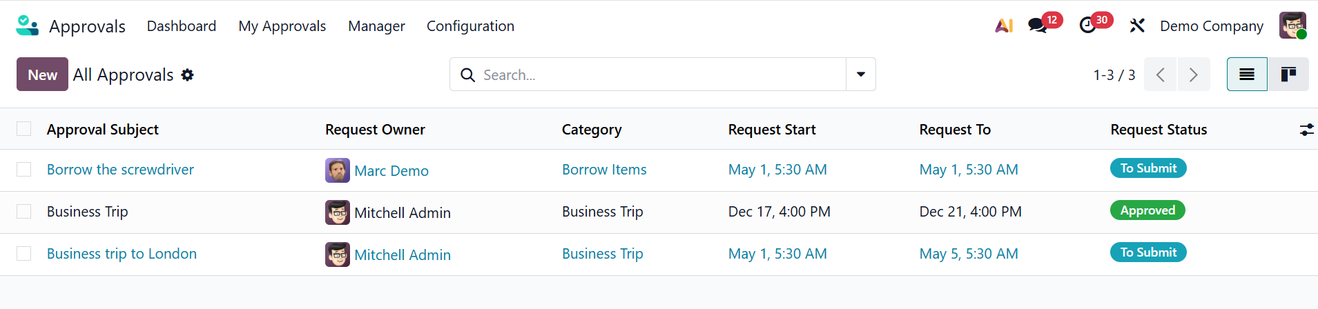 You can also create a new approval request by clicking the New button, as explained above.