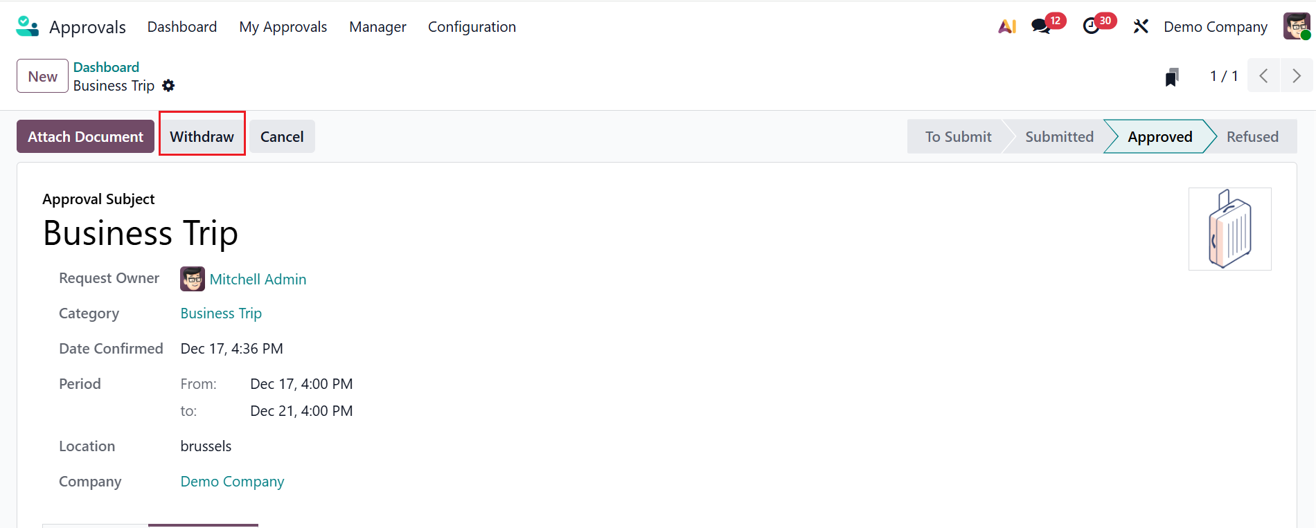 Once the request is approved, select Withdraw to refuse the request.