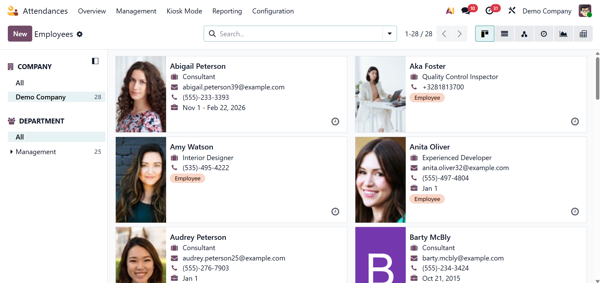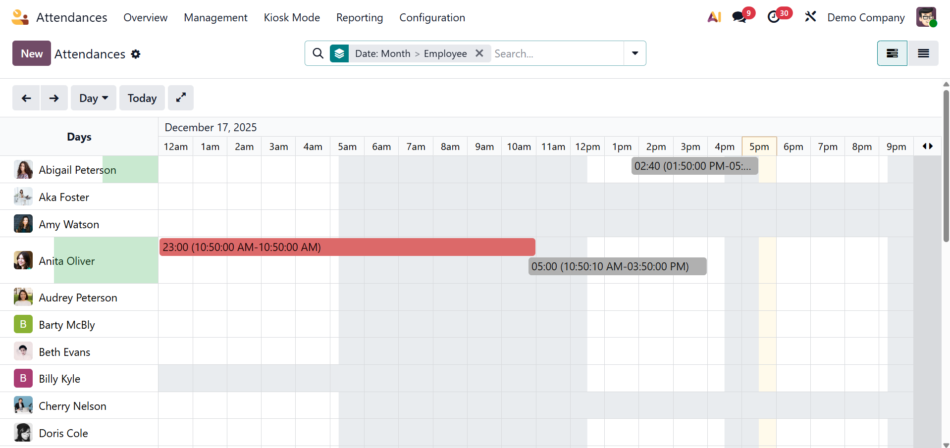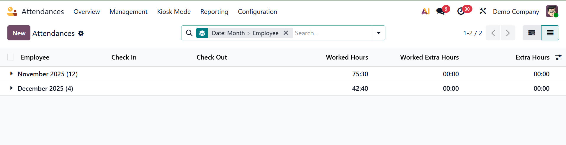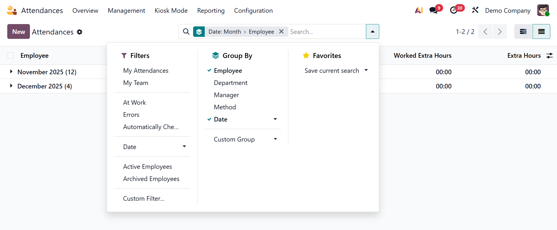 Use the Odoo 19 Attendance module to find out more about employee attendance.