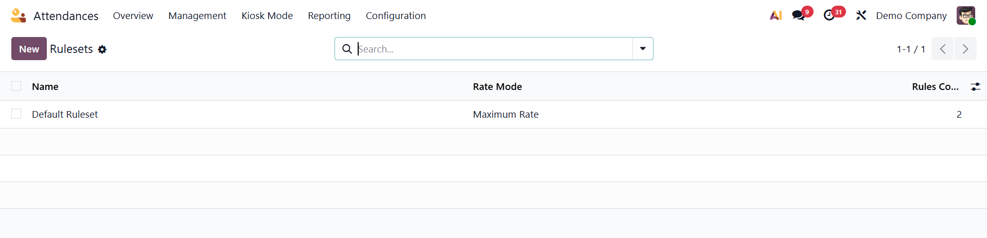 Companies can specify rules for calculating employee overtime, including when overtime begins, how it is calculated, and how excess working hours beyond standard working schedules are handled, using the Overtime Rulesets option in the Odoo Attendance module setup.