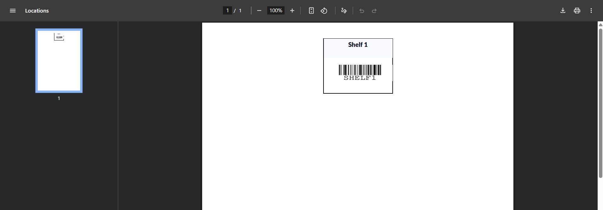 The barcode will be downloaded into your system once you click the "Location Barcode" button, as shown in the screenshot below, and it can be printed on an external device.