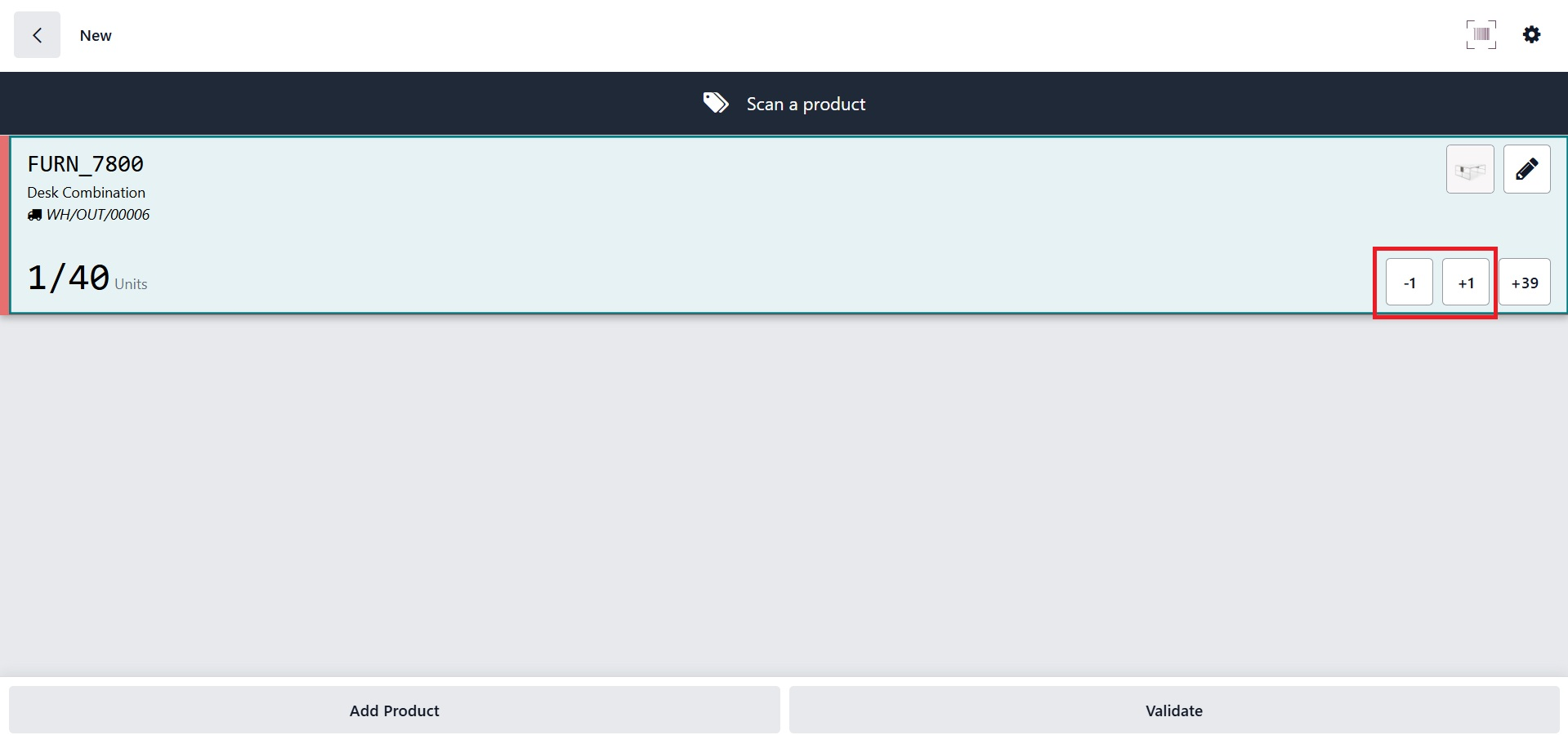 Click the "Add Product" button at the bottom of the window to manually add the product, then use the "+1" and "-1" buttons to add the product quantities, as shown below.