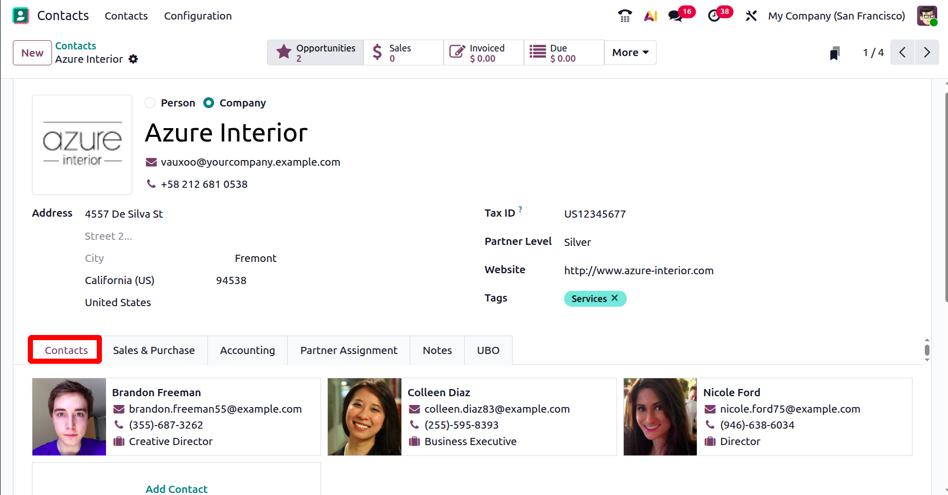 This setup allows you to manage multiple individuals under the same company record, ensuring that all employee or branch-level contacts are neatly structured and accessible.