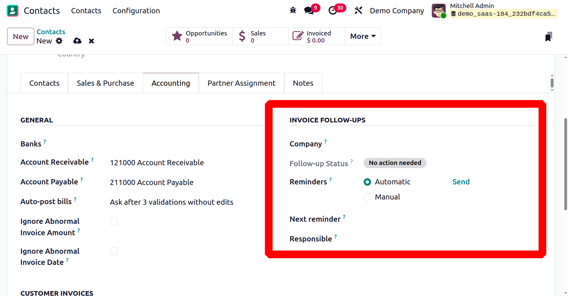 The tab further includes an Invoice Follow-up section. Within this section, you can configure: