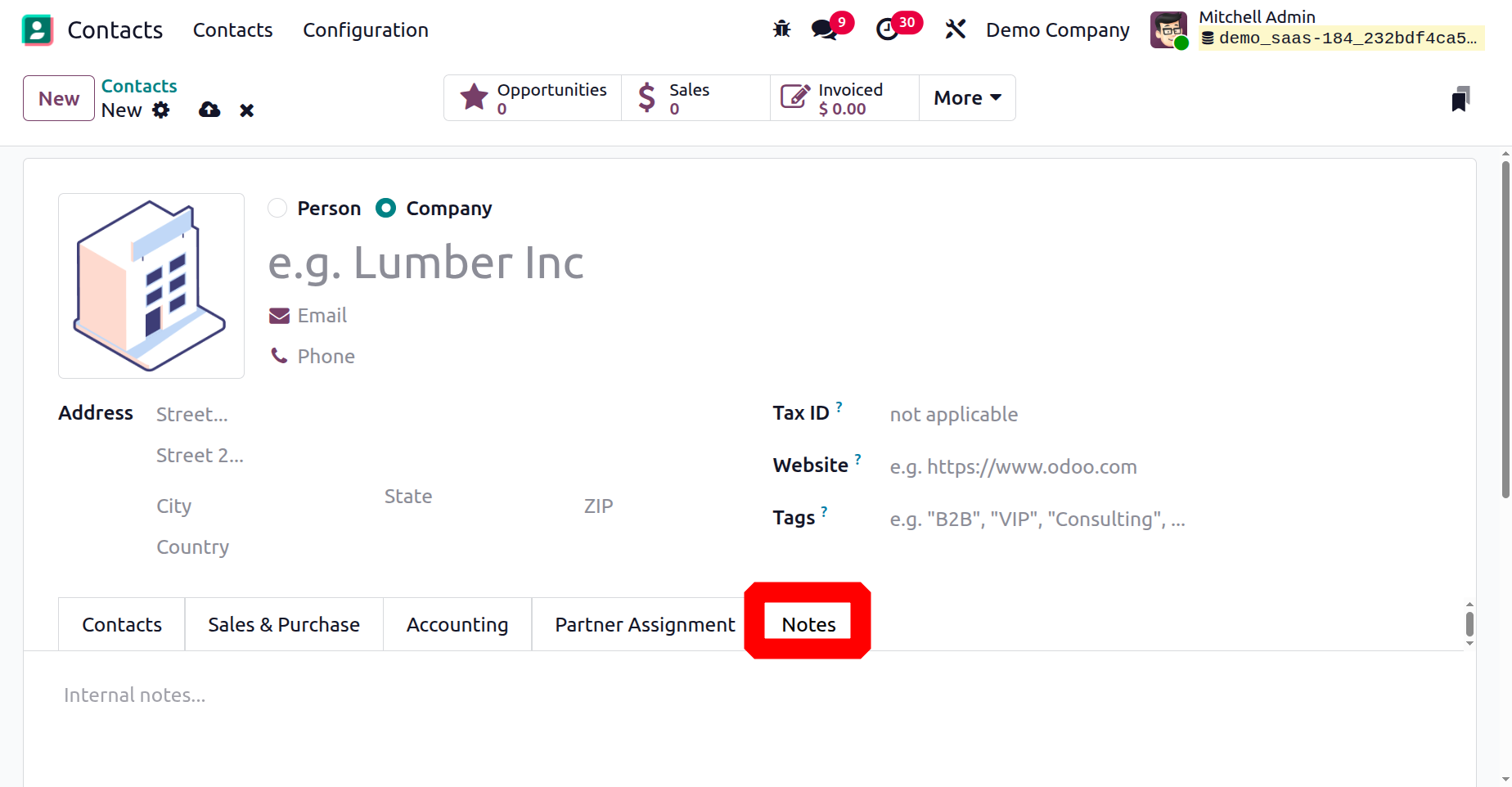 You can record any additional notes or observations about the contact in the Notes area. These notes are visible only to internal users and help teams share useful background information related to the contact.