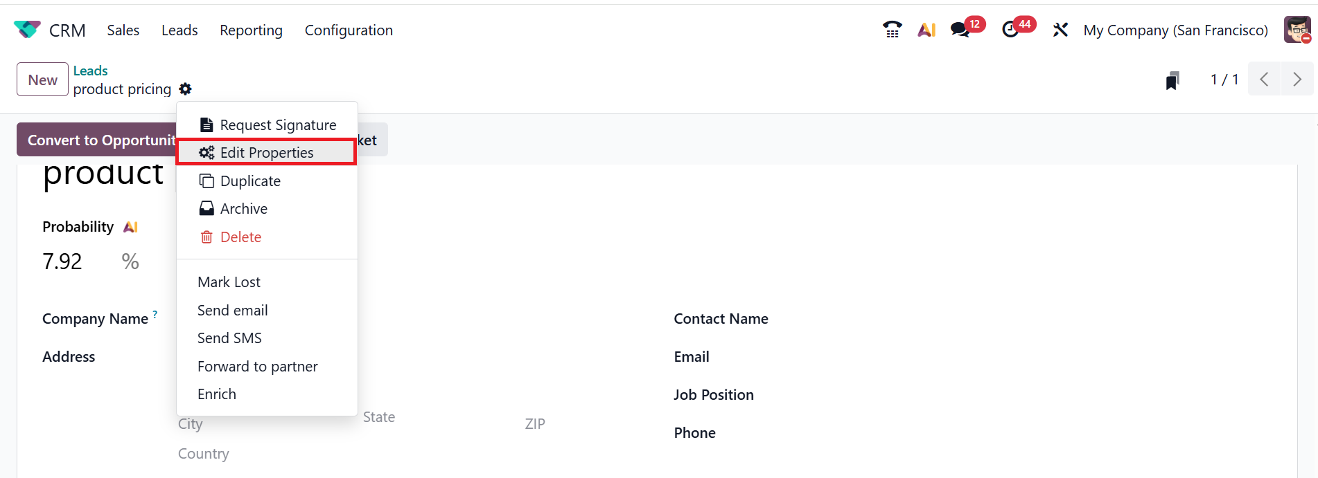 In the sections mentioned above, it is evident that creating new leads is significantly easier within the CRM module. Now, let’s go over how to convert leads into opportunities. In some situations, you can also convert leads directly into a sales quotation.