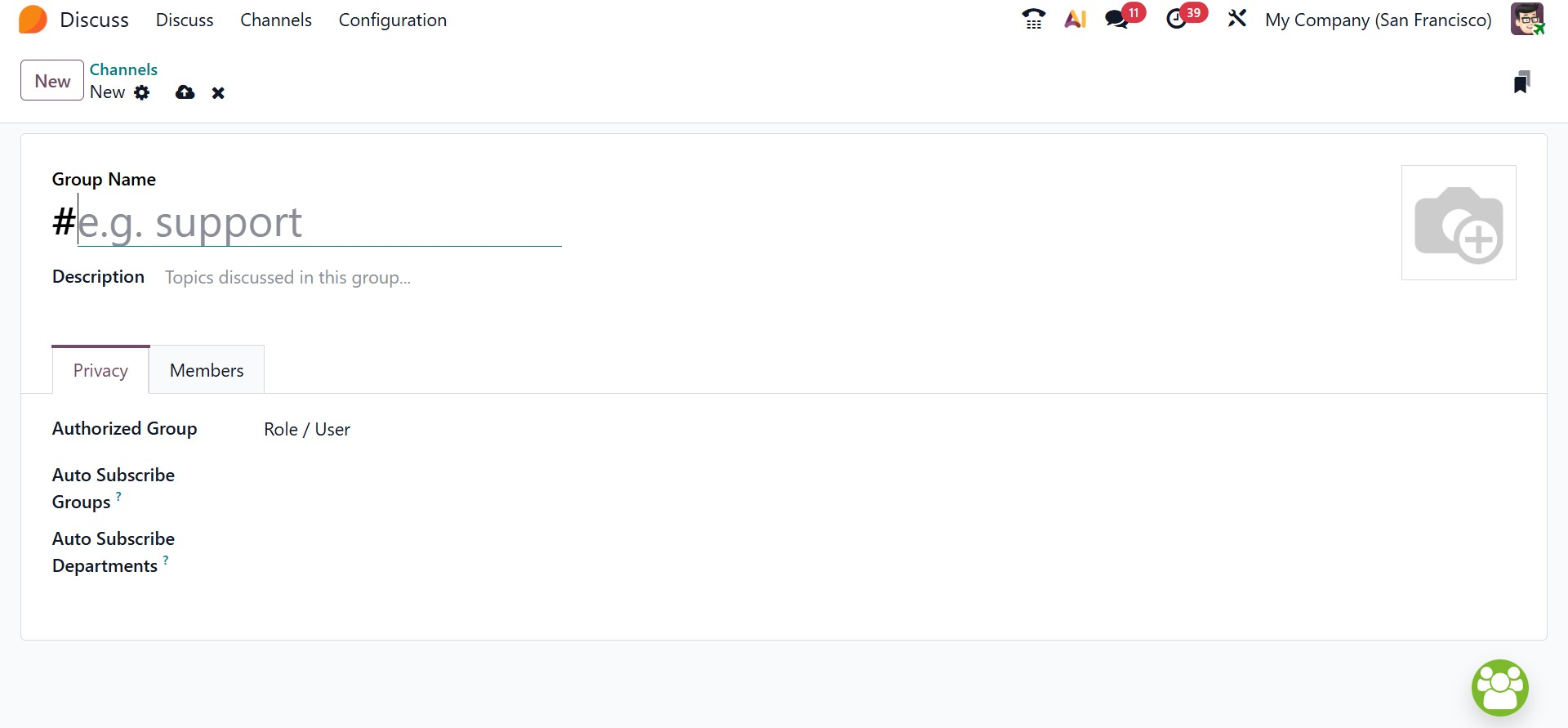 In Odoo 19 Enterprise, Channels within the Discuss module are designed to support organized, topic-based communication across teams. Channels can be used for departments, projects, announcements, or any subject that requires ongoing group discussions, helping teams collaborate in a structured and transparent way.