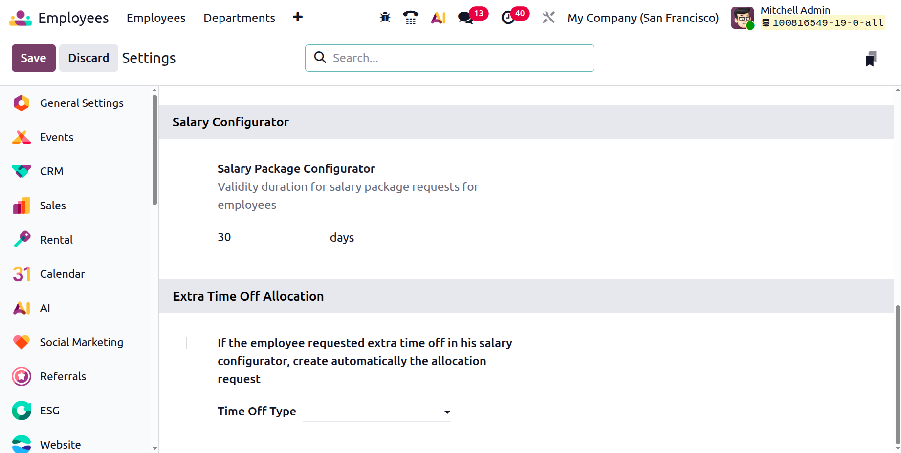 The Salary Configurator provides options for configuring salary-related rules, while Extra Time Off Allocation allows organizations to define additional leave entitlements beyond standard allocations.