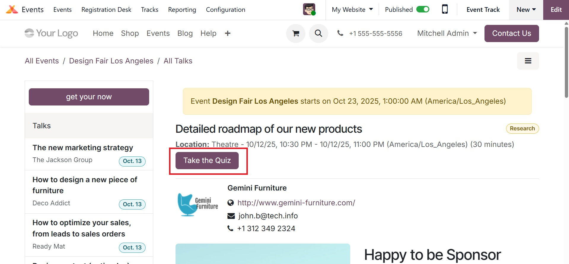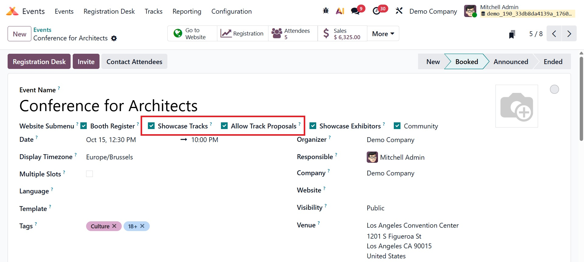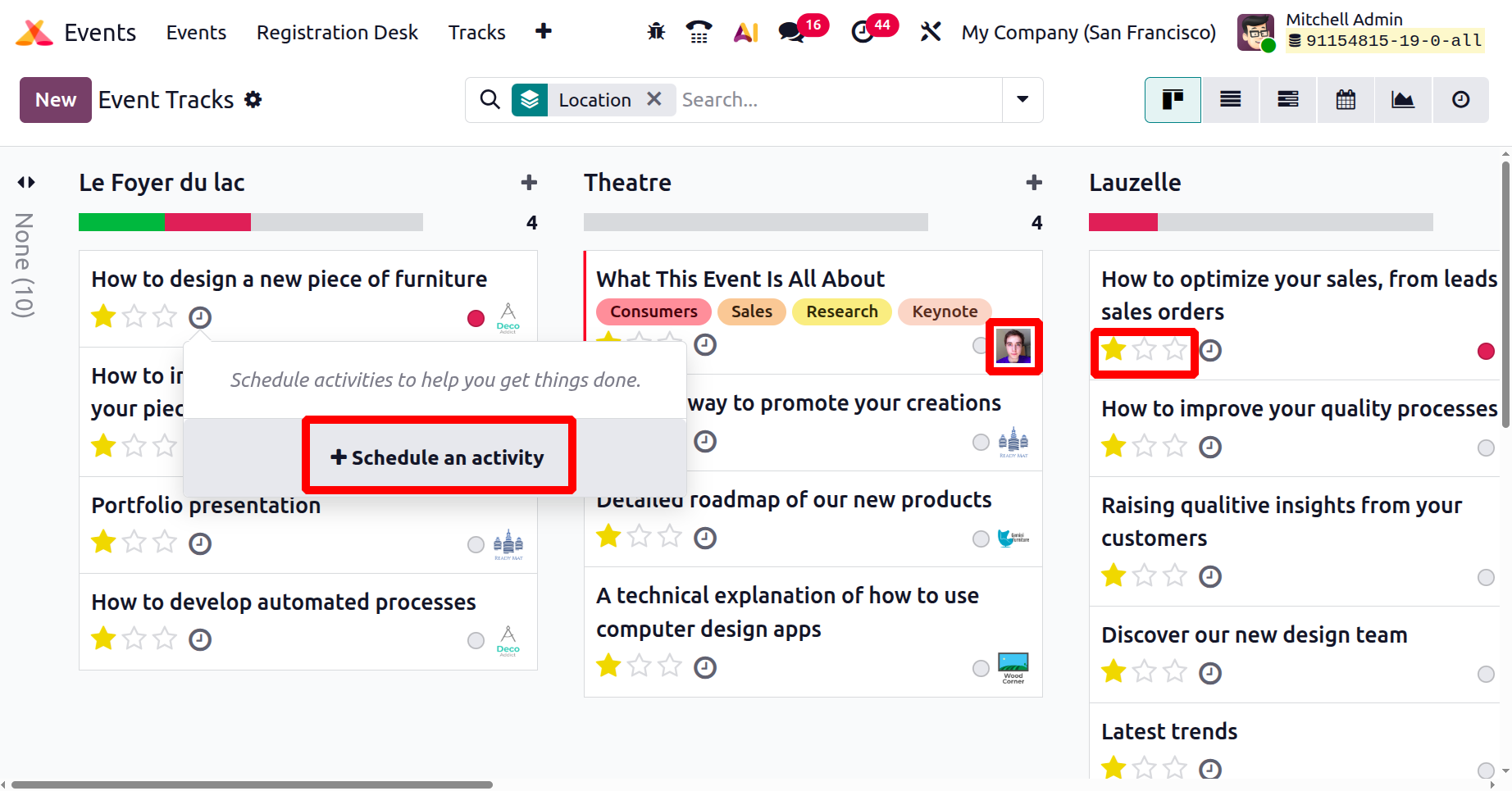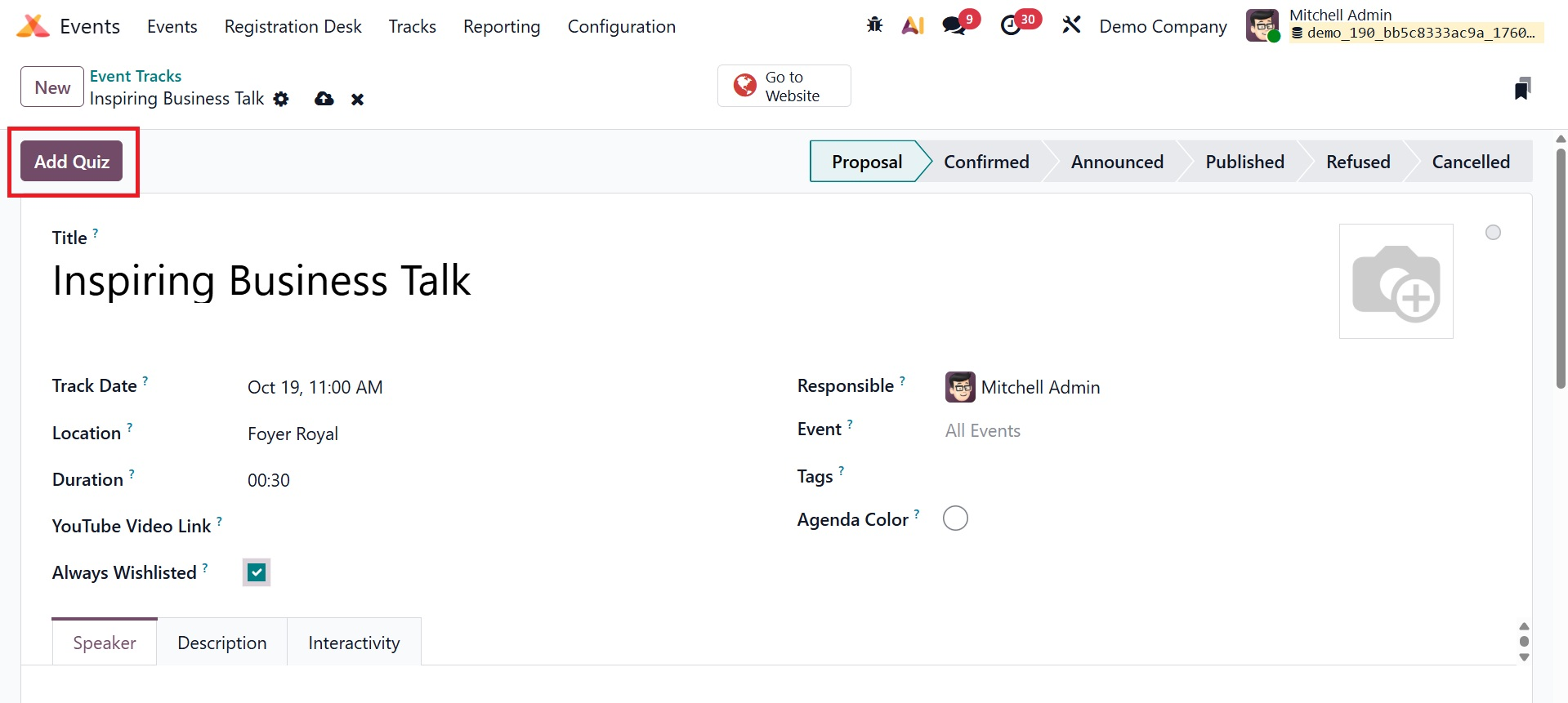 These are the primary steps we follow when creating and managing the event's tracks using the Events Module of the Odoo ERP Software.