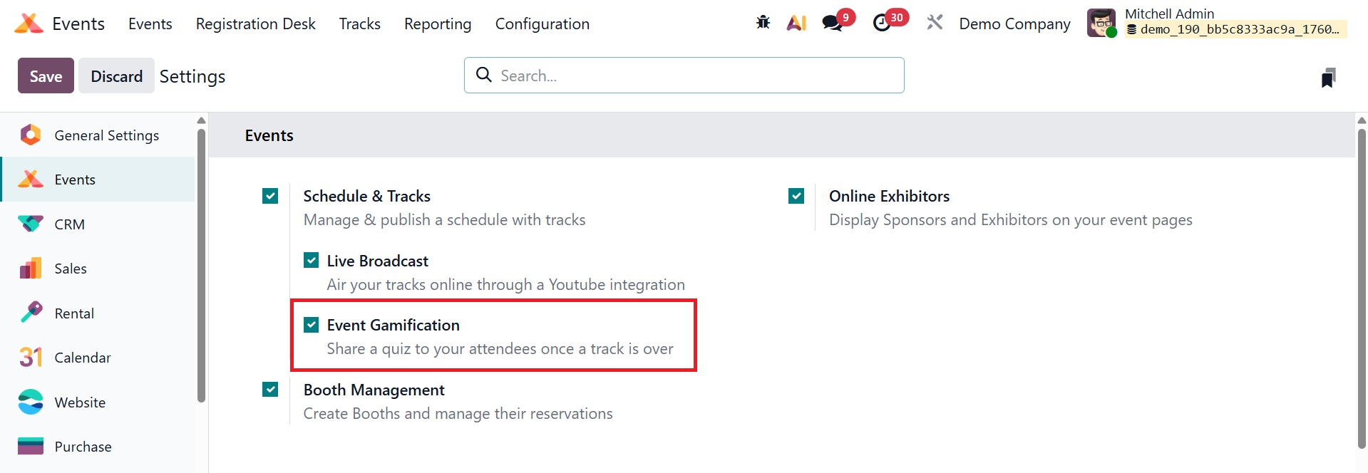 Finally, press the "Save" button. Using the Event Gamification option in the Event module's settings, you can include a quiz once the participants have finished the track.