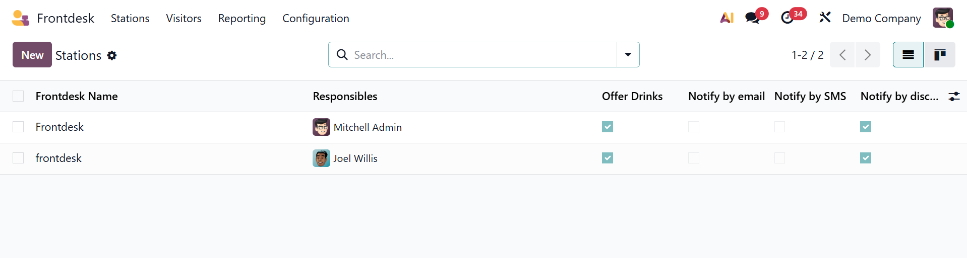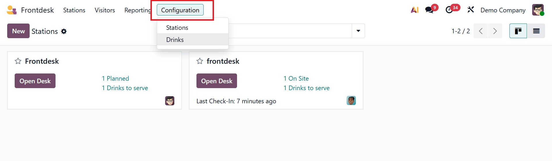 The module displays each station that has been constructed. The duties are displayed by the front desk name. The configuration form is comparable, as we previously stated.