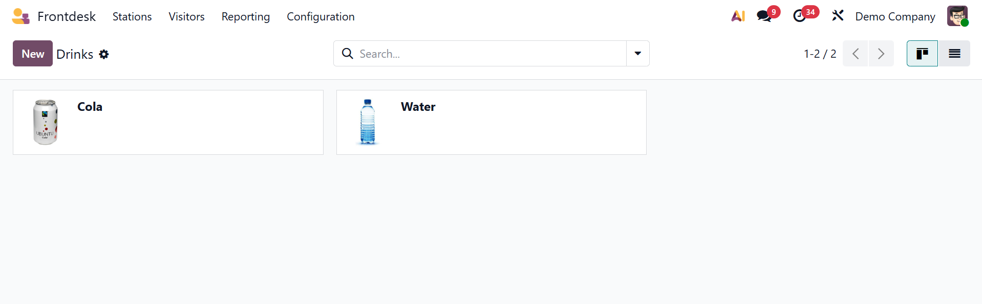 Users can customize the Stations and Drinks using the Configuration option.