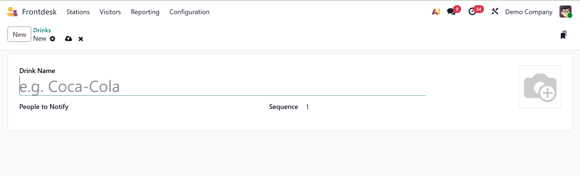 Give the beverage a name and indicate who should be aware of it. A picture and a sequence number can be added.