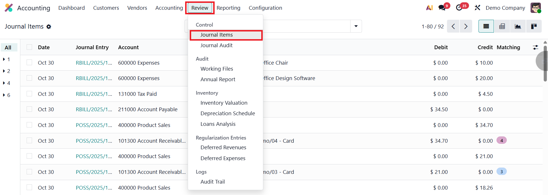 You can access this feature by navigating to the Accounting module and selecting Journal Items from the Review menu.