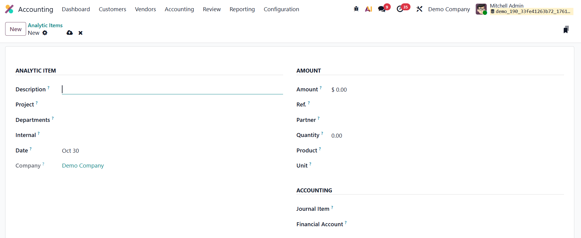 To manually create a new analytic item, click New and fill in the relevant fields.