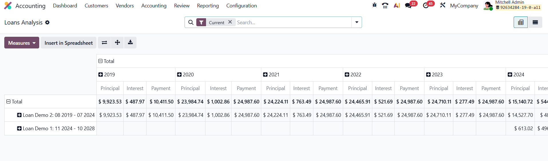 In Odoo 19 Accounting, the enhanced Loan Analysis Report provides a powerful, data-driven overview of your organization’s active and closed loans, helping finance teams monitor repayment progress, evaluate interest expenses, and assess overall debt performance with precision.