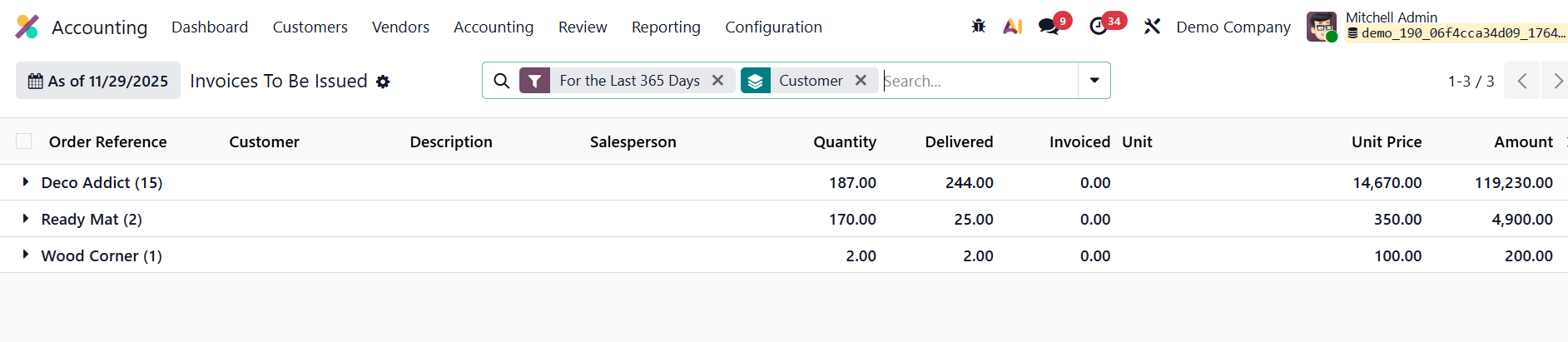 Similarly, the Invoices To Be Issued report focuses on the sales side.