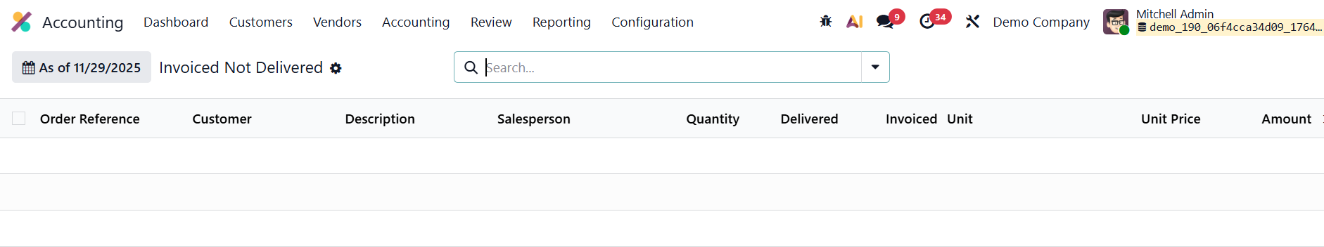 The Invoiced Not Delivered report, conversely, lists all customer invoices that have been created before the corresponding deliveries or services have been completed.