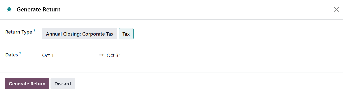 Then, click Generate Return. Odoo 19 supports various types of returns, including: