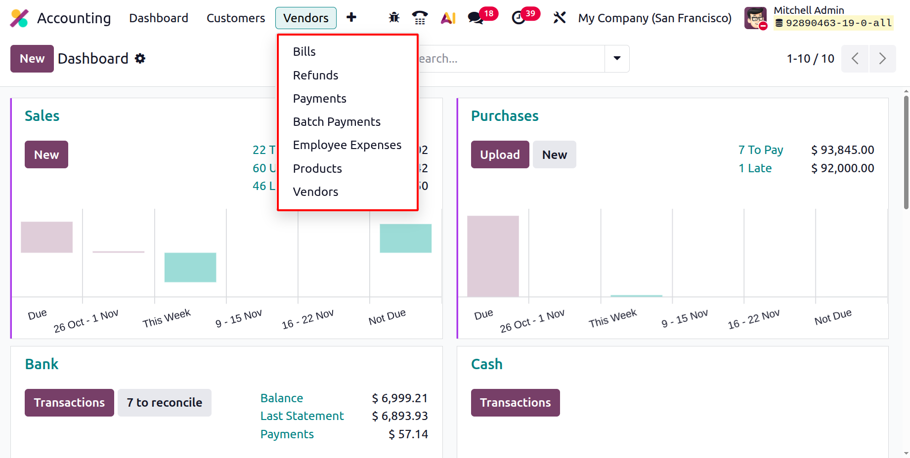 In Odoo 19 Accounting, the Employee Expenses management feature has been further refined to improve clarity, approval workflows, and integration with accounting records. Accessible via the Vendors menu in the Accounting module, this feature allows companies to efficiently document, track, approve, and reimburse employee expenses with enhanced accuracy.
