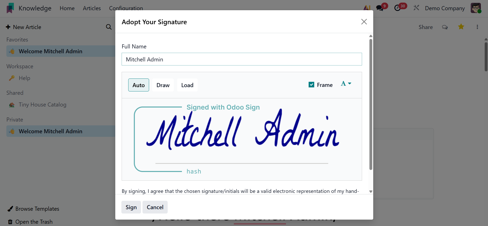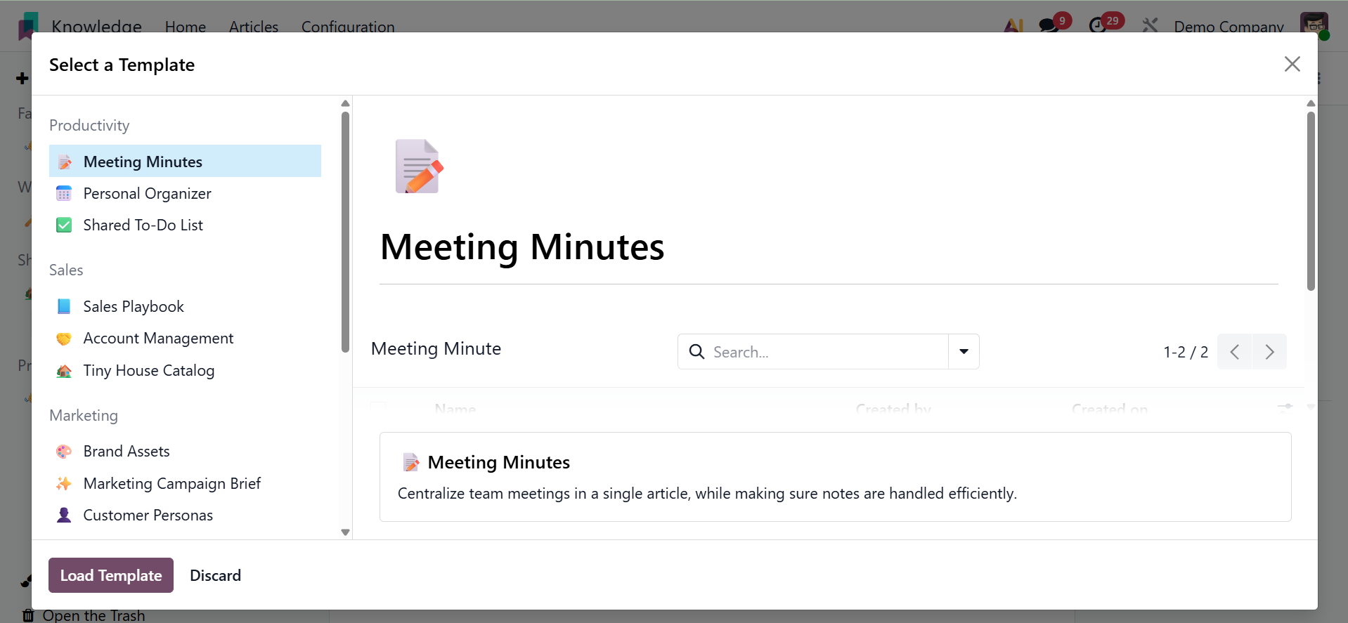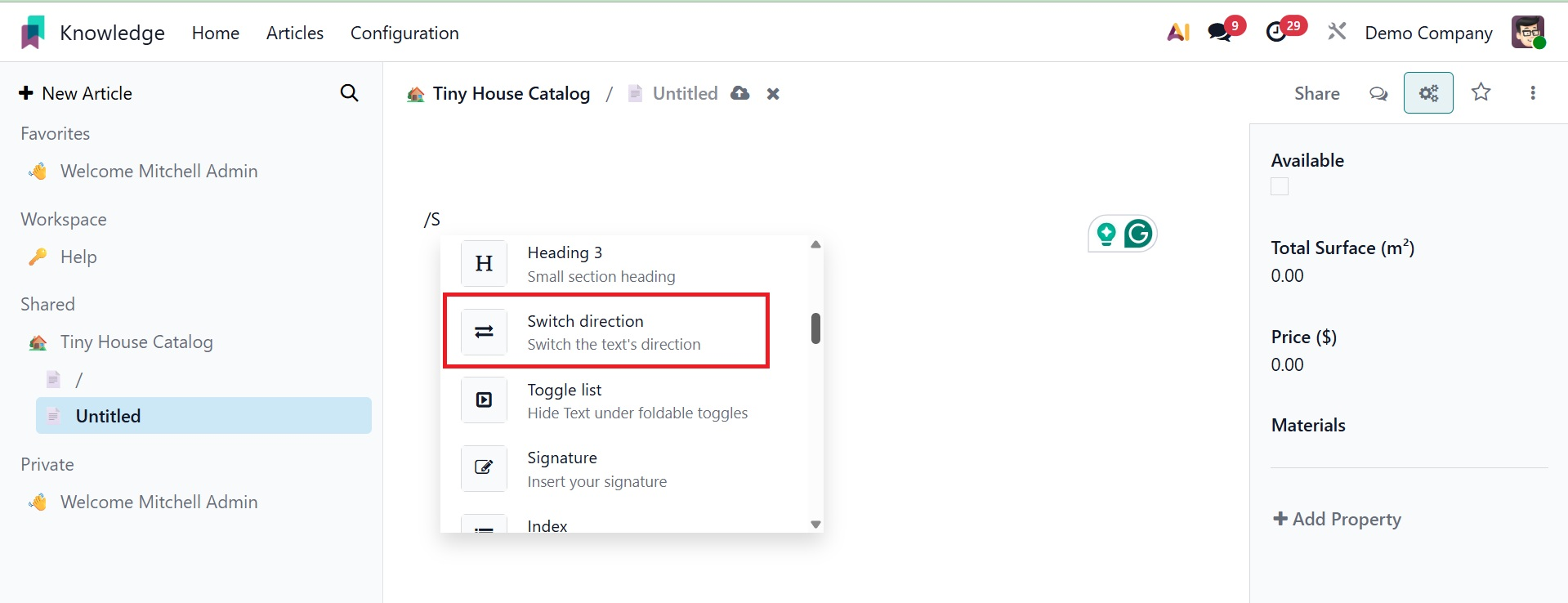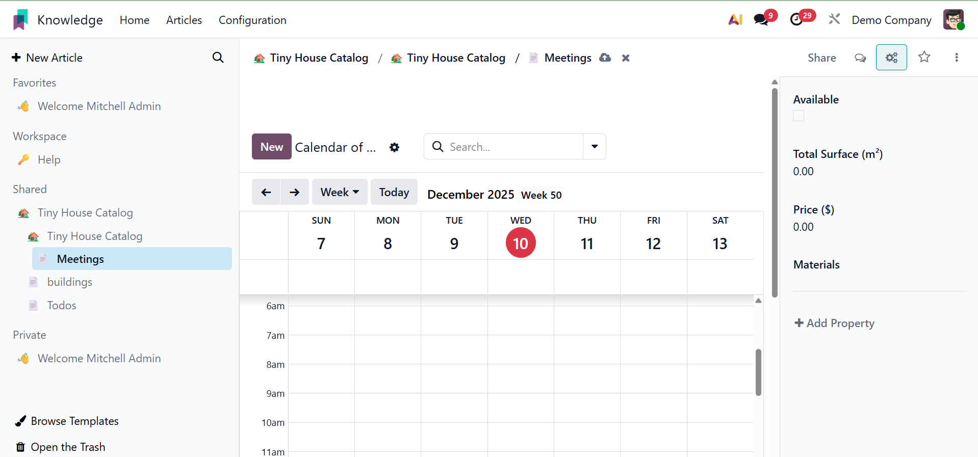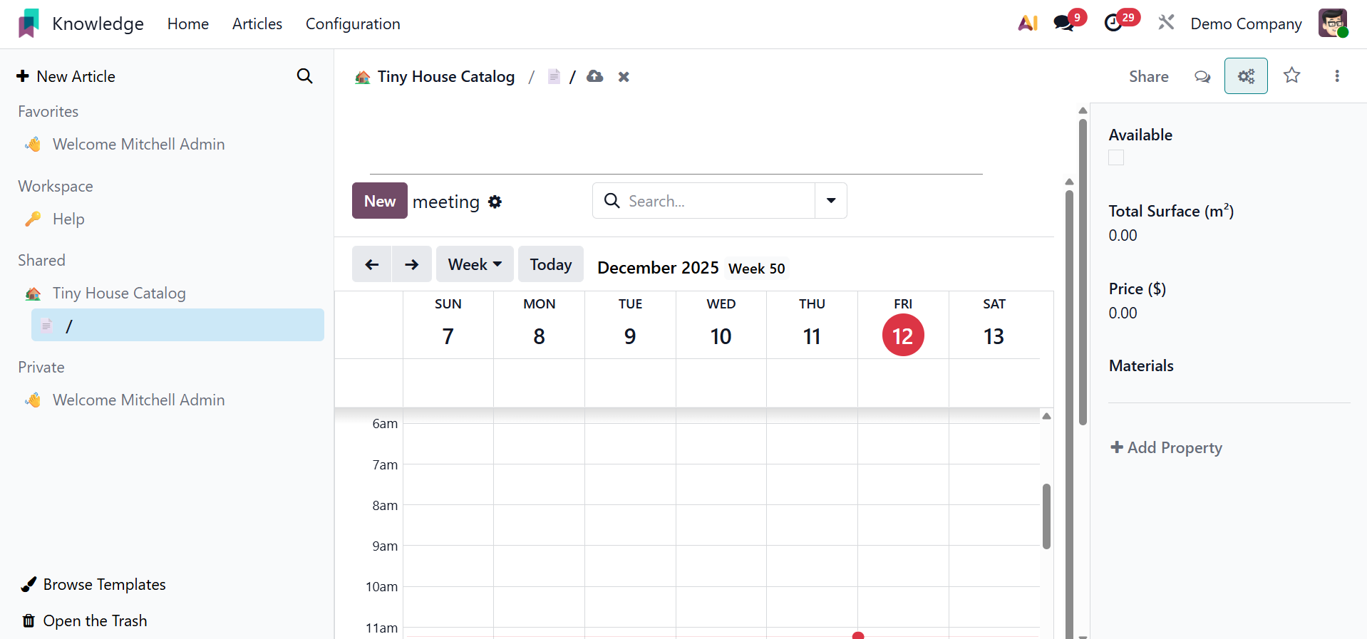 You can easily and methodically produce and share information with your colleagues using Odoo 19's new knowledge management system.