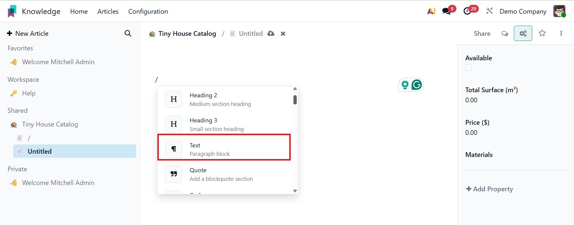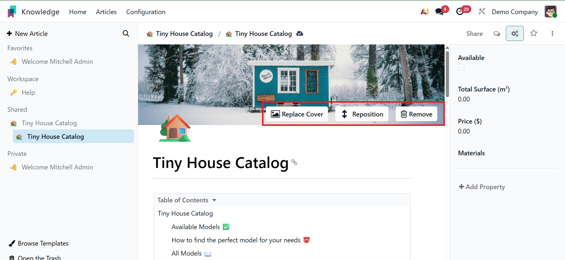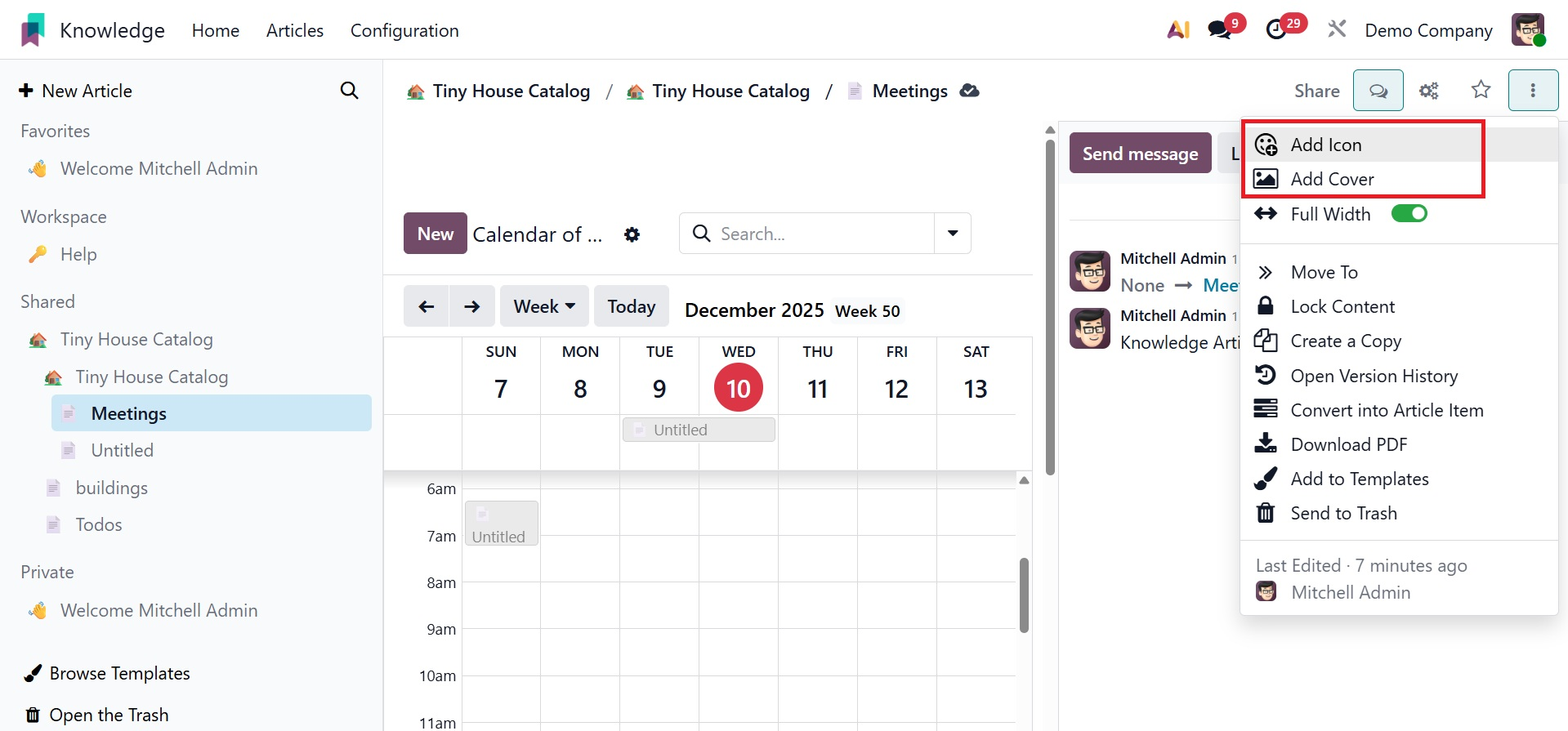 There may be a title for the article. That new article can have its properties, icon, and cover photo added.