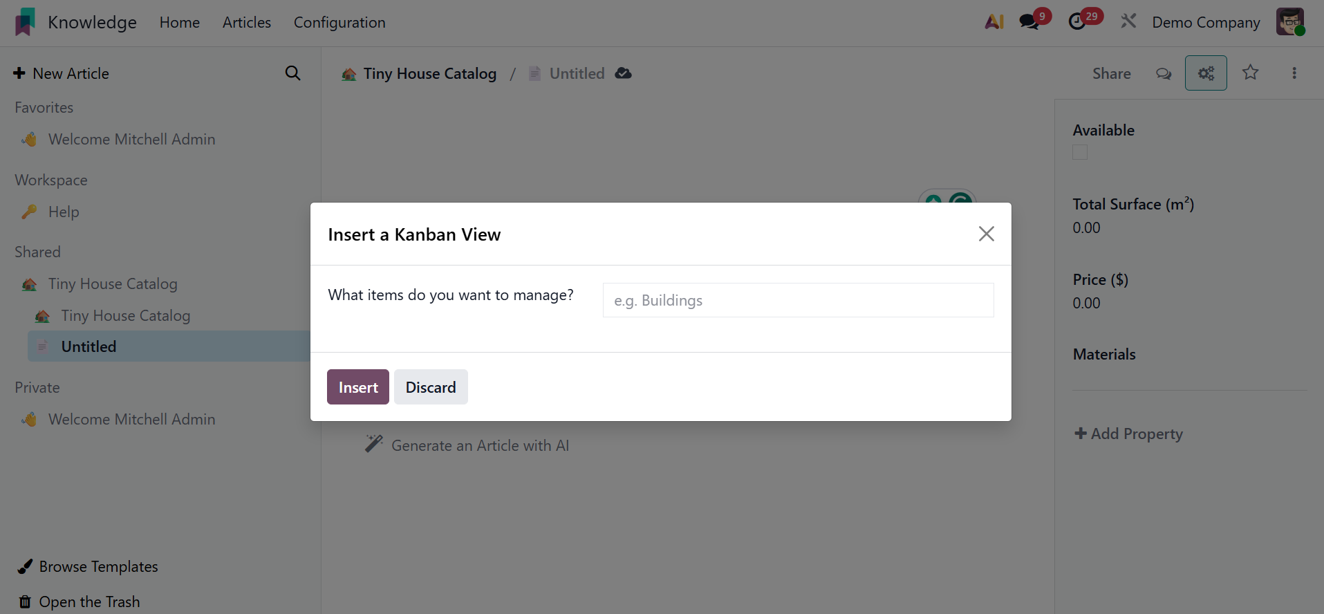 Consequently, when you add an item, the Kanban view will be added depending on that item. Click the Insert button after that.
