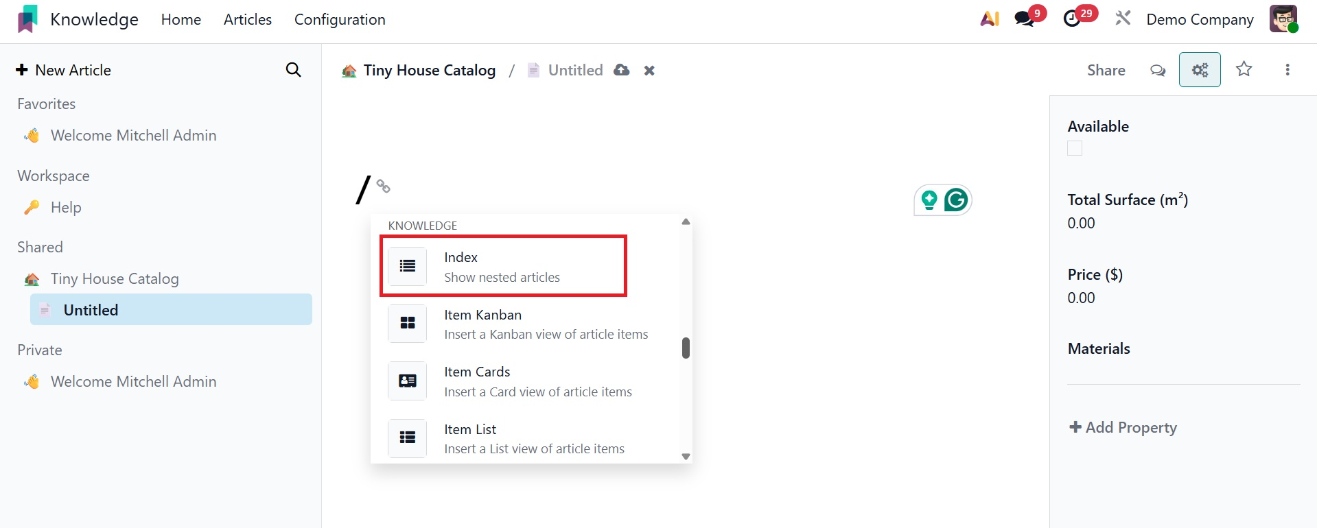 Index: The / index command only displays the first level of articles if an article contains sub-articles. It won't display the nested article even if it has nested with other articles.