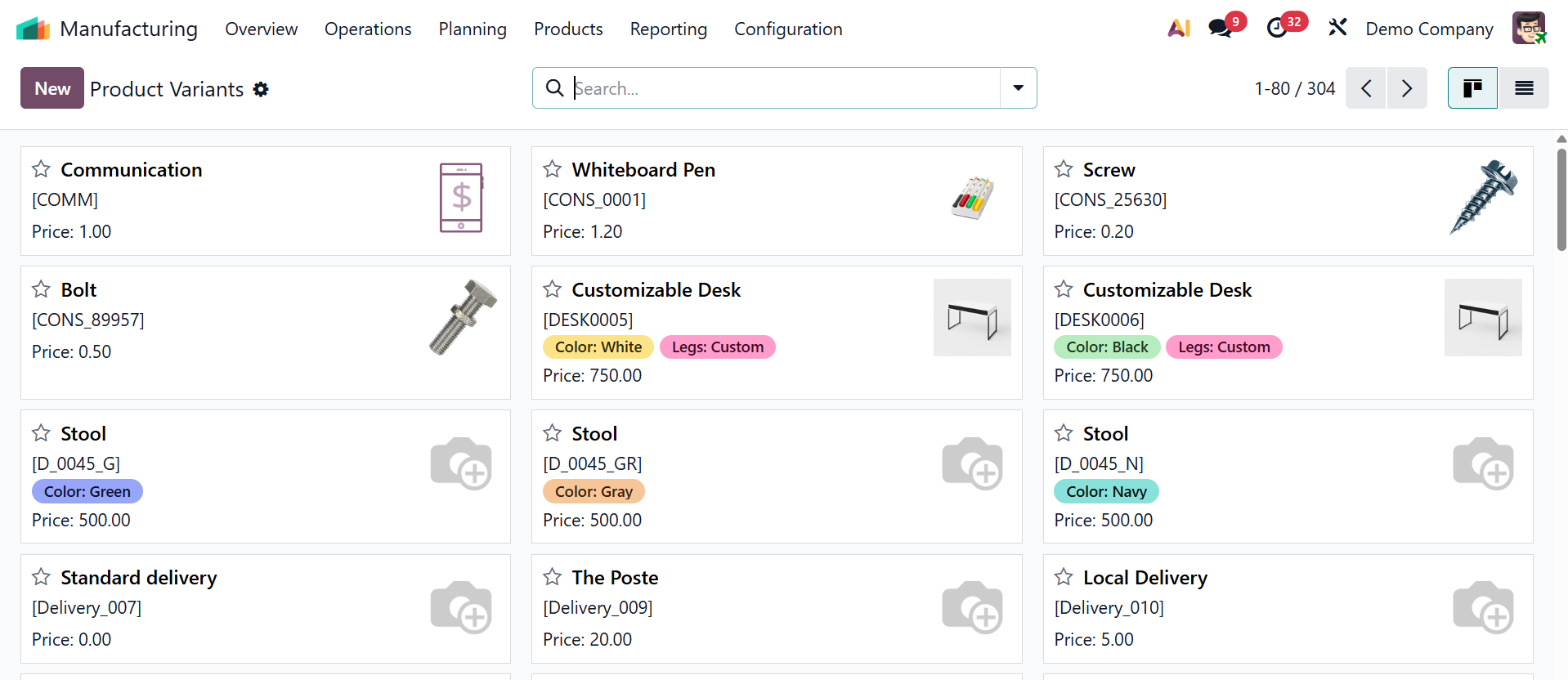 By combining related products under a single product template and tracking each variant separately, Odoo's product variants simplify inventory, pricing, and sales procedures. The Product Variant option in the Odoo manufacturing module, which shows a dashboard of all potential product variants previously produced in a Kanban view, is where this functionality may be controlled.