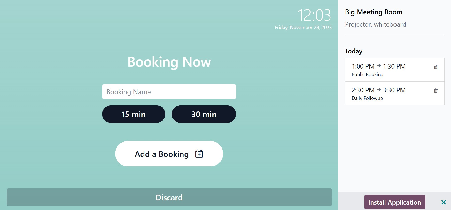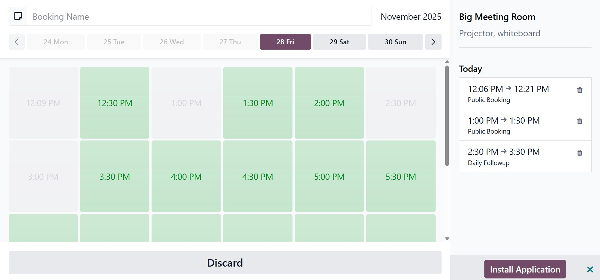 When you select "Add a Booking," the system opens a scheduling window where you can choose the meeting’s date and time. After saving, the booking is added to the room’s schedule.