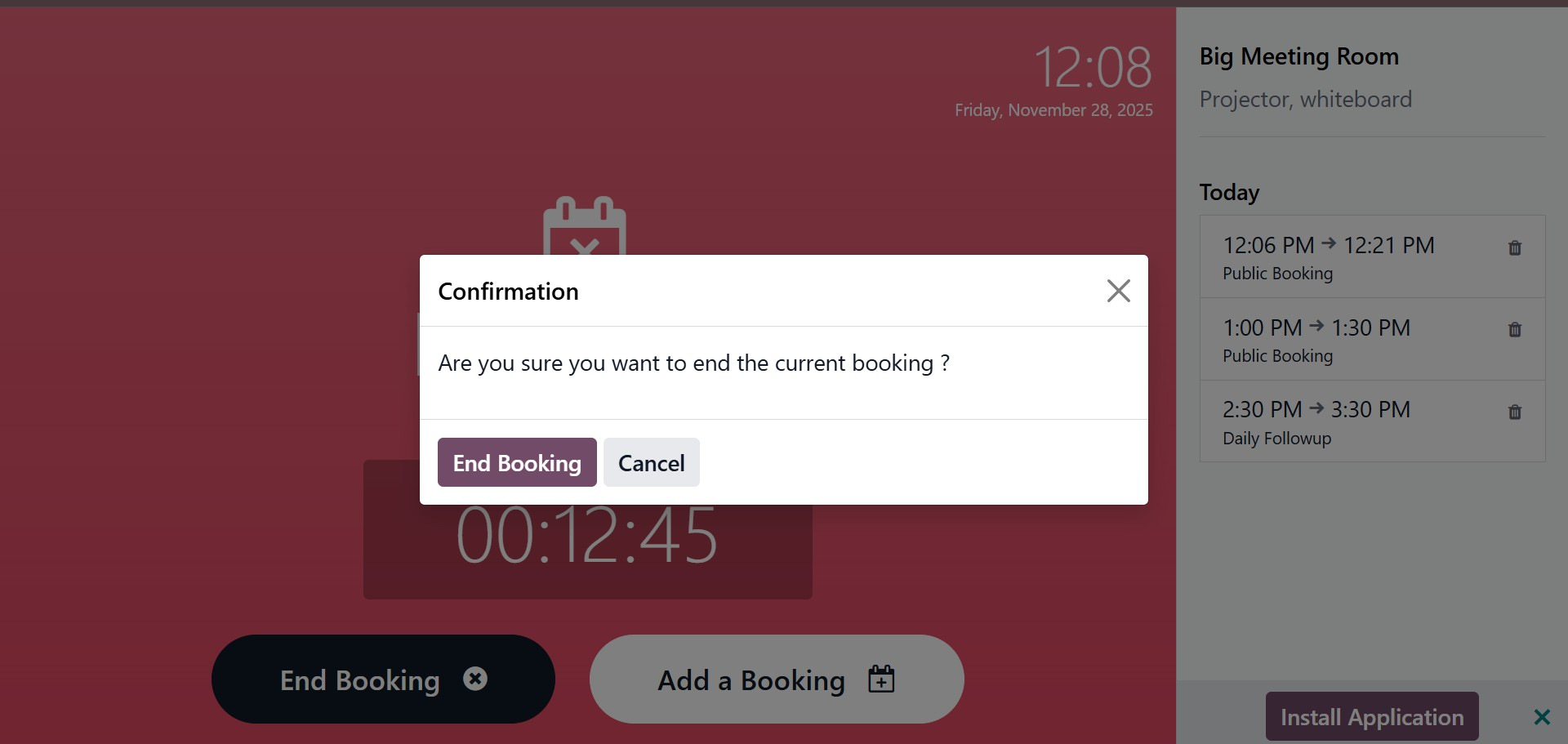 To end an active booking, simply click End Booking. A confirmation prompt will appear, ensuring you do not end the reservation accidentally.