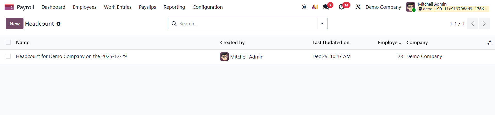 The Headcount report under the Reporting menu may provide an overview of a company's workers over a specific time period.