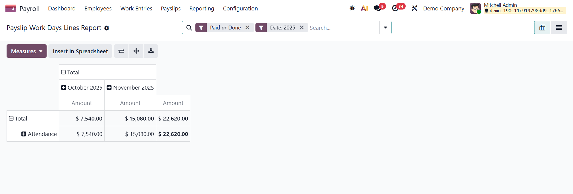 Payslip Work days Lines Report