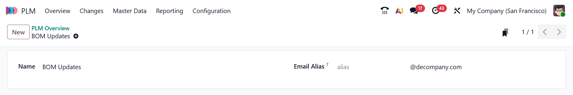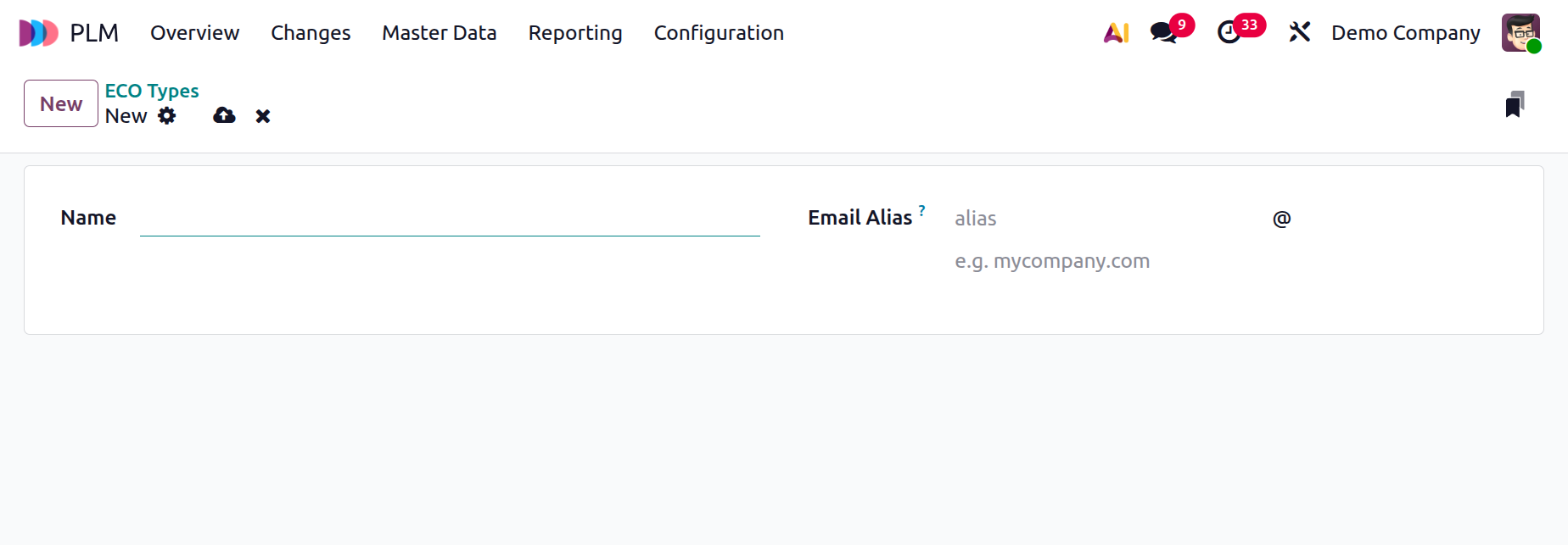 You can add an appropriate name for your ECO type in the Name field and add an Email Alias to automatically generate the ECOs from emails.