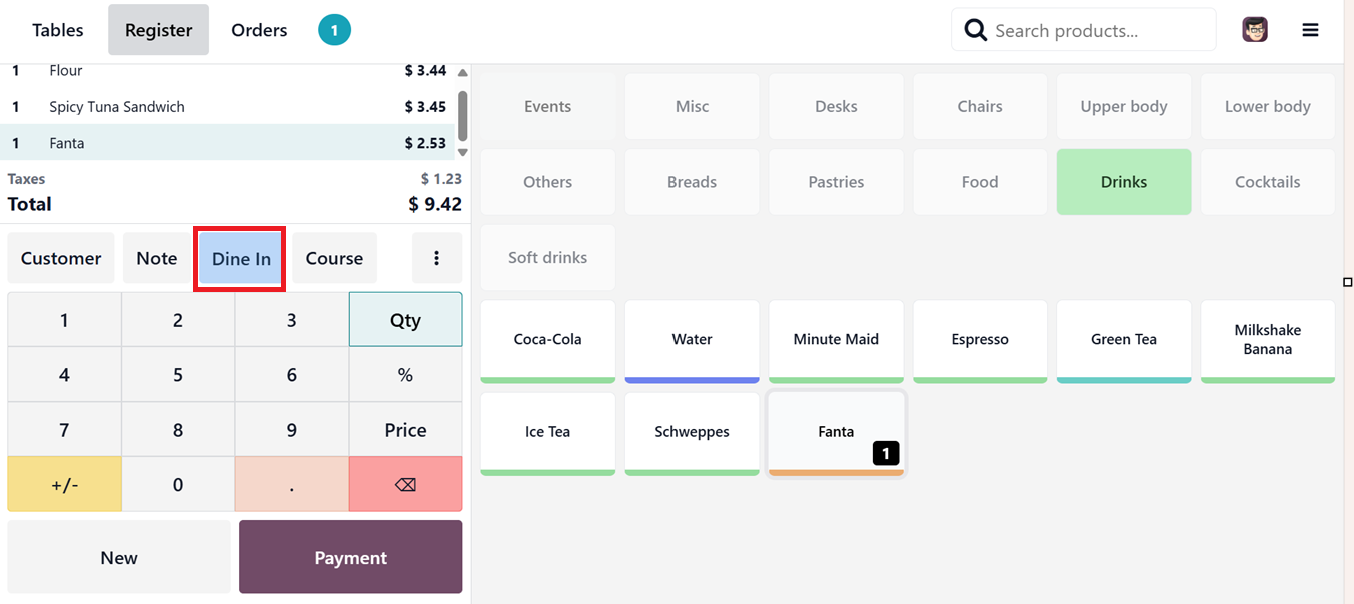 After choosing the order method, the product catalog will appear. So you can choose the products and proceed with the next steps.